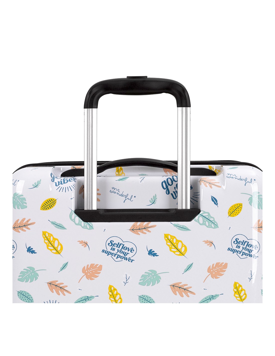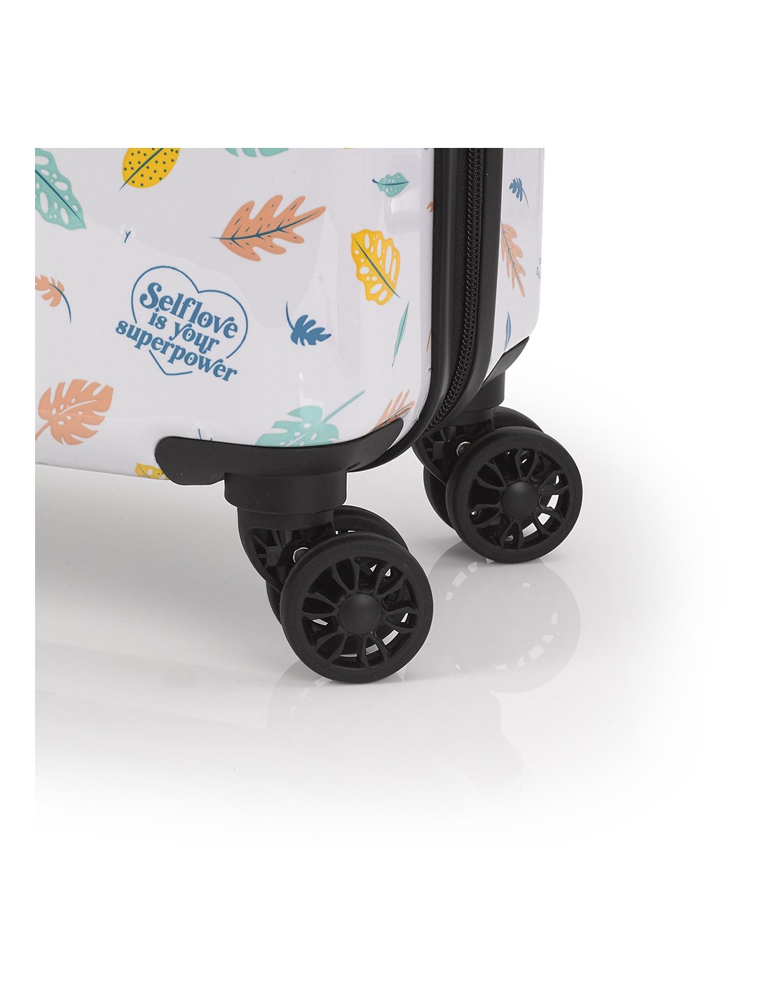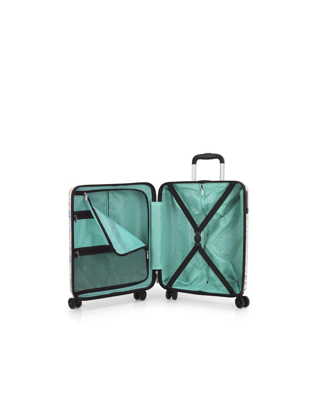 Maleta tamaño de cabina rígida, con capacidad de hasta 37,4 L. y 4 ruedas dobles.