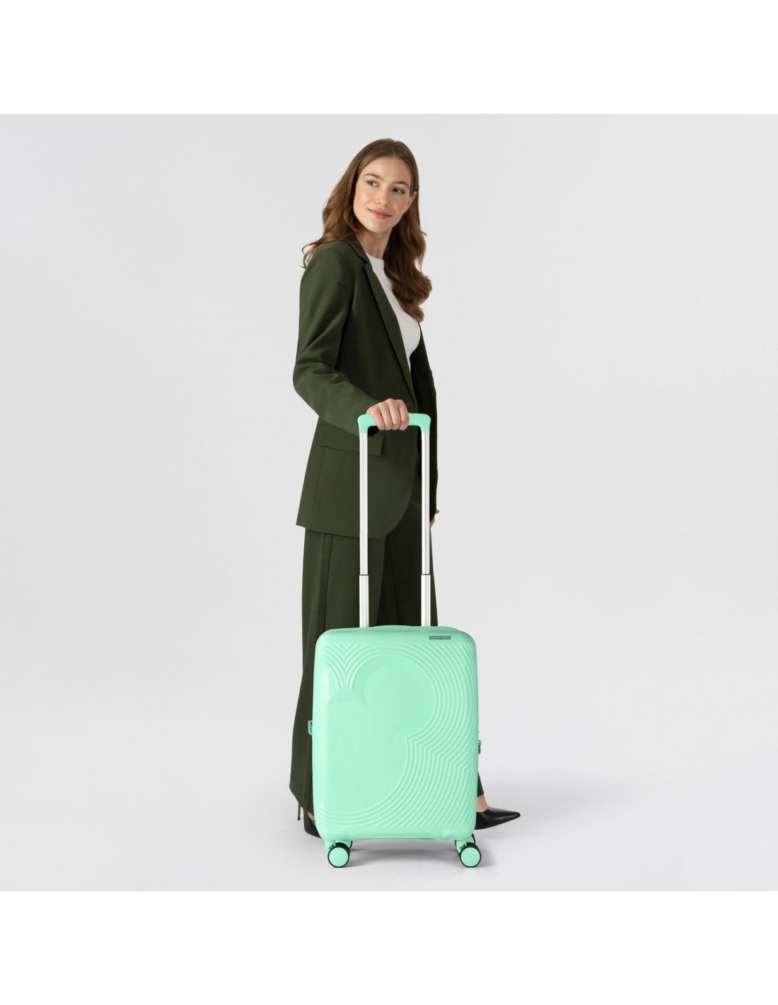 Un auténtico clásico de viaje: la maleta de cabina "Mickey Magic" de American Tourister. Fabricada en polipropileno robusto y resistente a la intemperie, esta maleta mágica se desplaza sin esfuerzo por cualquier aeropuerto. Elegante y vibrante, con compartimento para la ropa, cinta cruzada y pliegues elásticos, empacar es facilísimo. El asa con cerradura y el cierre TSA integrado ofrecen mayor comodidad y seguridad.