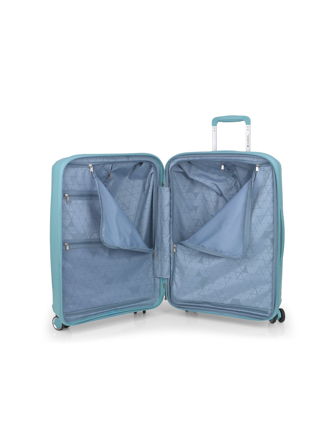 Maleta mediana rígida, expandible y 4 ruedas dobles multi dirección. Fabricada en polipropileno.