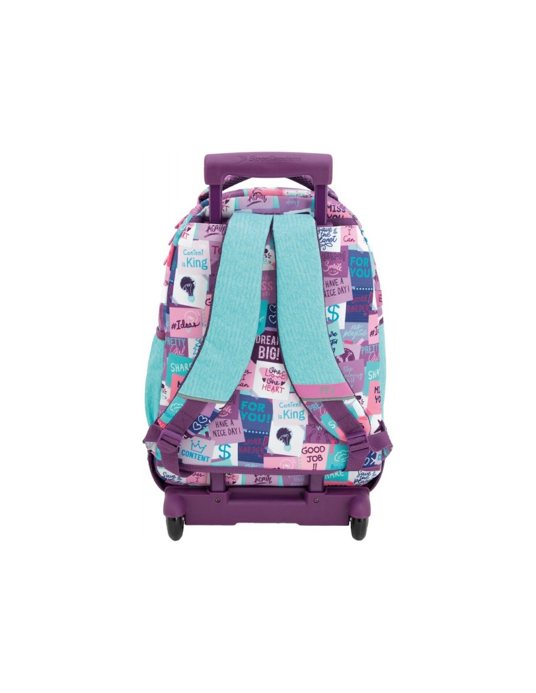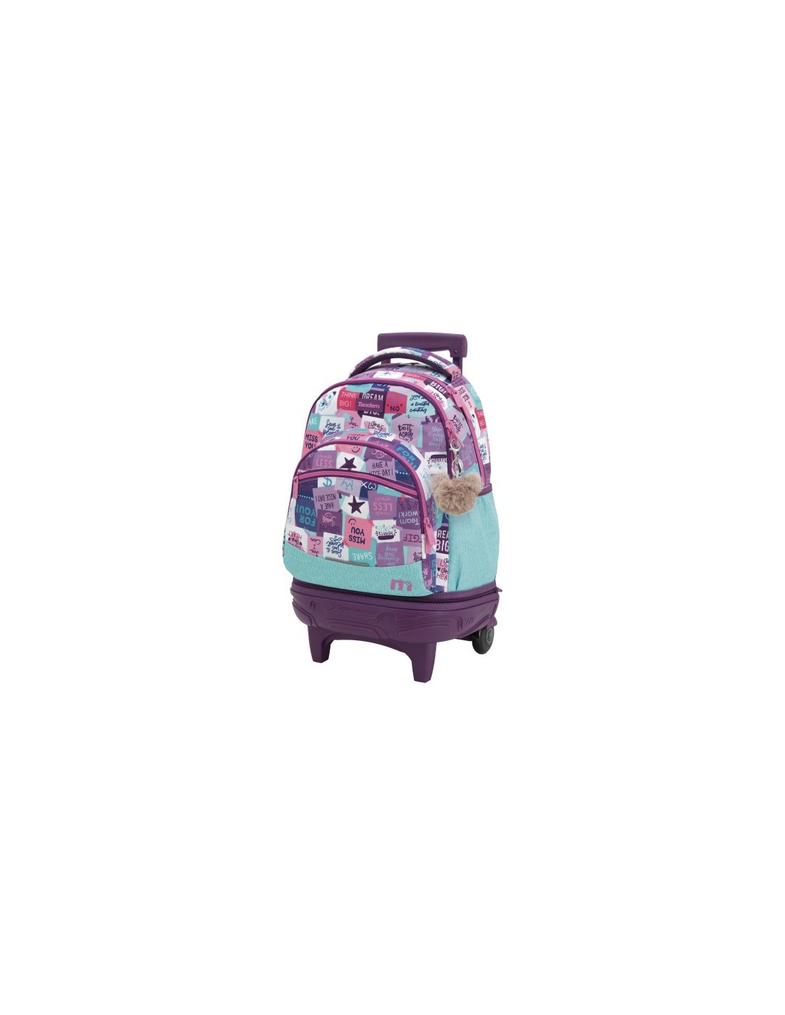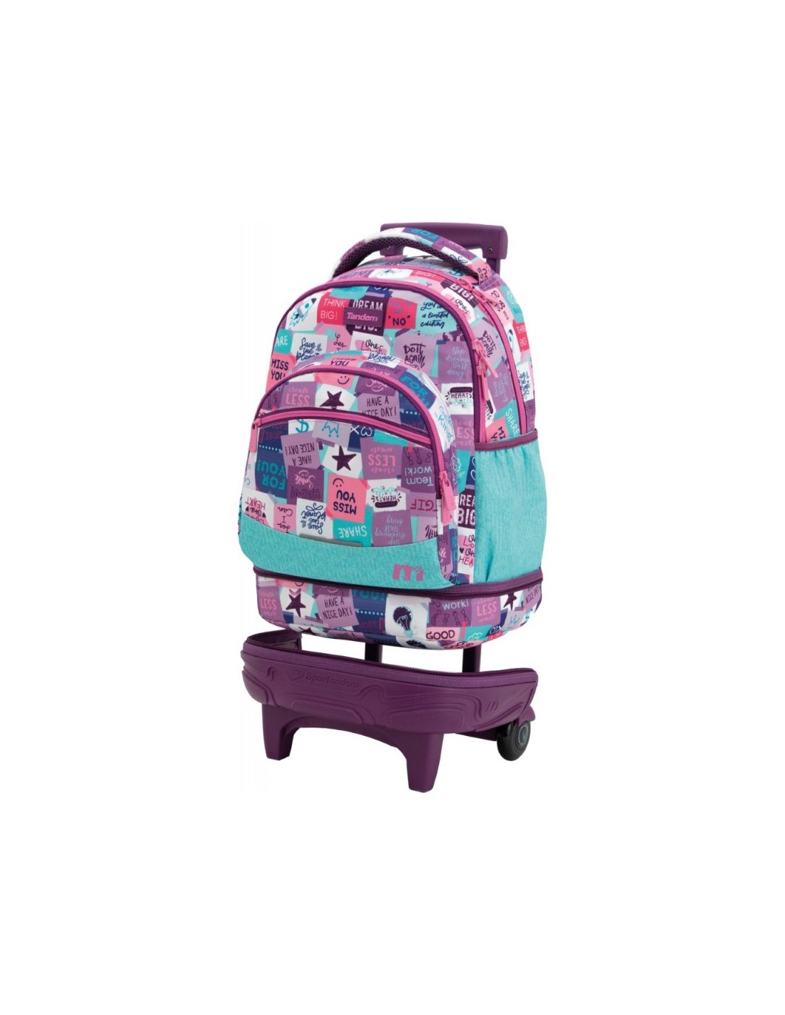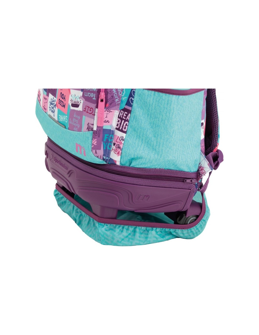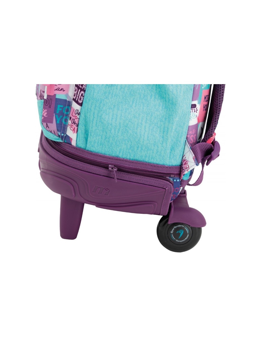 Base rígida resistente Mochila escolar con cremallera especial más gruesa y un organizador interno. Cuenta con tirantes ergonómicos de espuma extra transpirable. Cubre ruedas para no mancharse. Bolsillos en los laterales para botella de agua. Cinta de agarre superior y cremallera de unión inferior.
