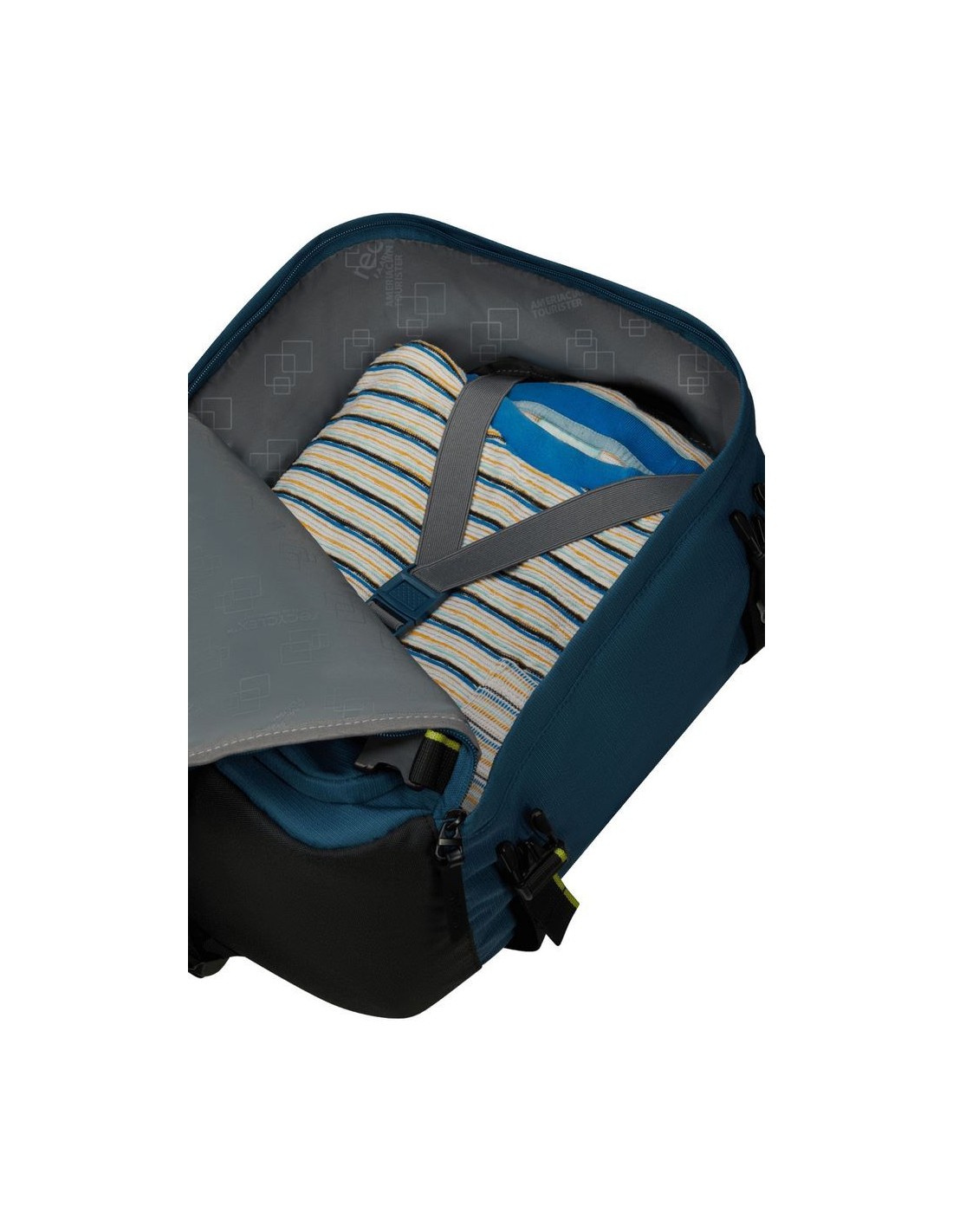 Mochila. Blanda. Material de fabricación: poliéster rPet con 17 botellas PET recicladas usando tecnología Recyclex™. Dimensiones: 40 x 25 x 20 cms. Volumen: 24,2 litros. Peso: 0,46 kg. Cierre con cremallera. Asa superior. Soporte para botella. Smart sleeve. Equipaje de mano. Compartimento central con cintas de sujeción. Compartimento para tablet. Organización interna. Garantía legal.