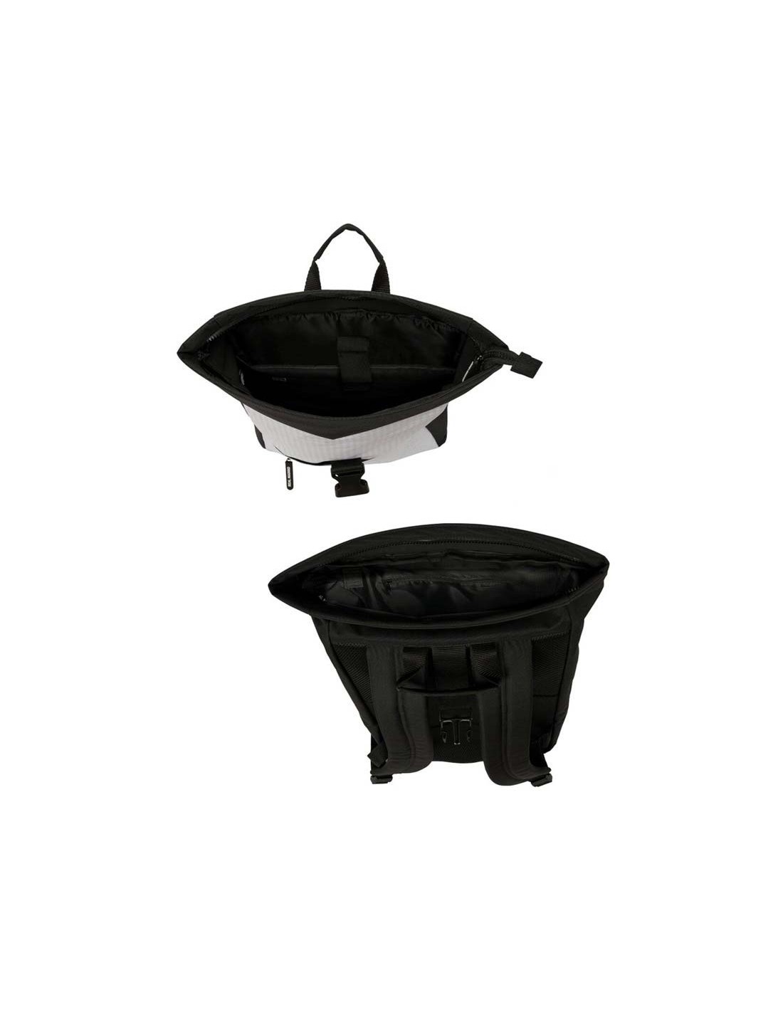 Compartimentos interiores con cierre de cremallera, y solapa con hebilla.