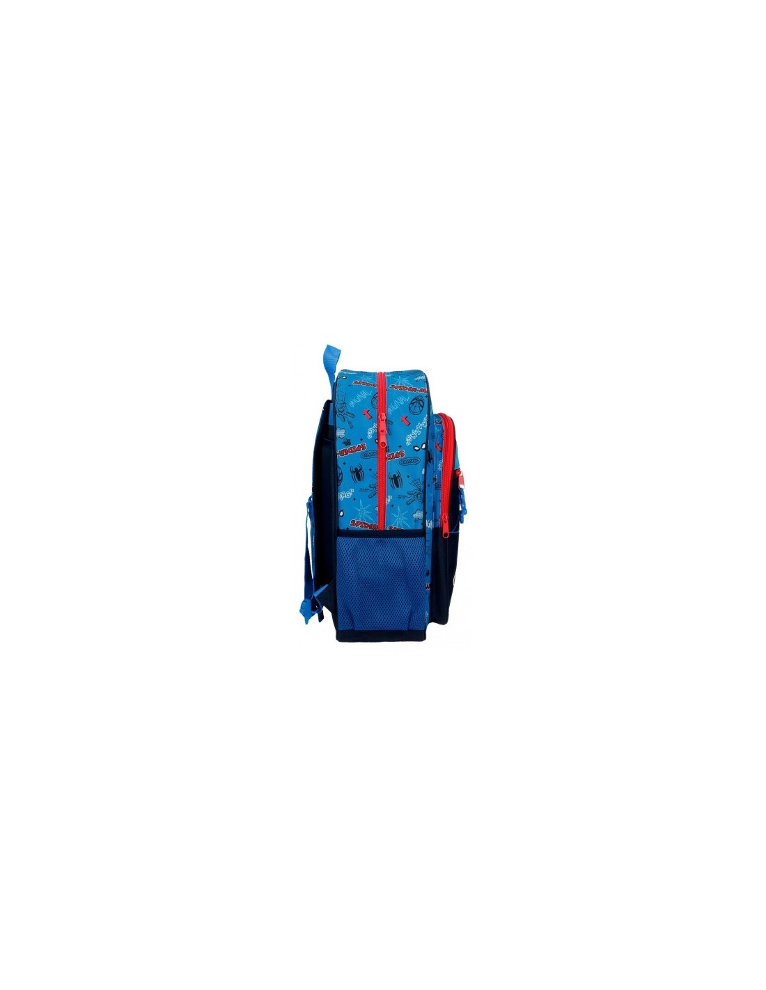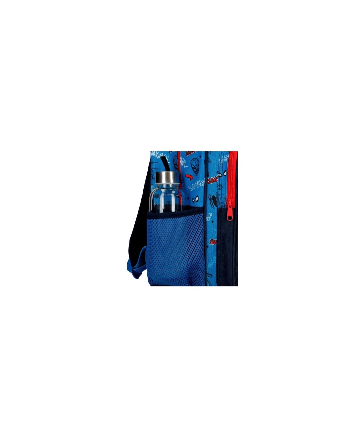Dos bolsillos frontales de diferentes tamaños y dos bolsillos laterales de red para guardar los pequeños accesorios y el almuerzo.