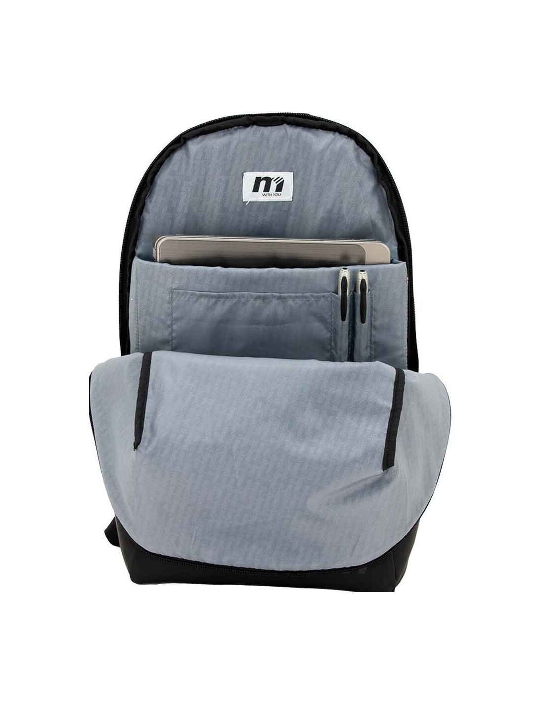 Un compartimento con cierre de cremallera,bolsillo delantero con mismo tipo de cierre.Bolsillos laterales abiertos.