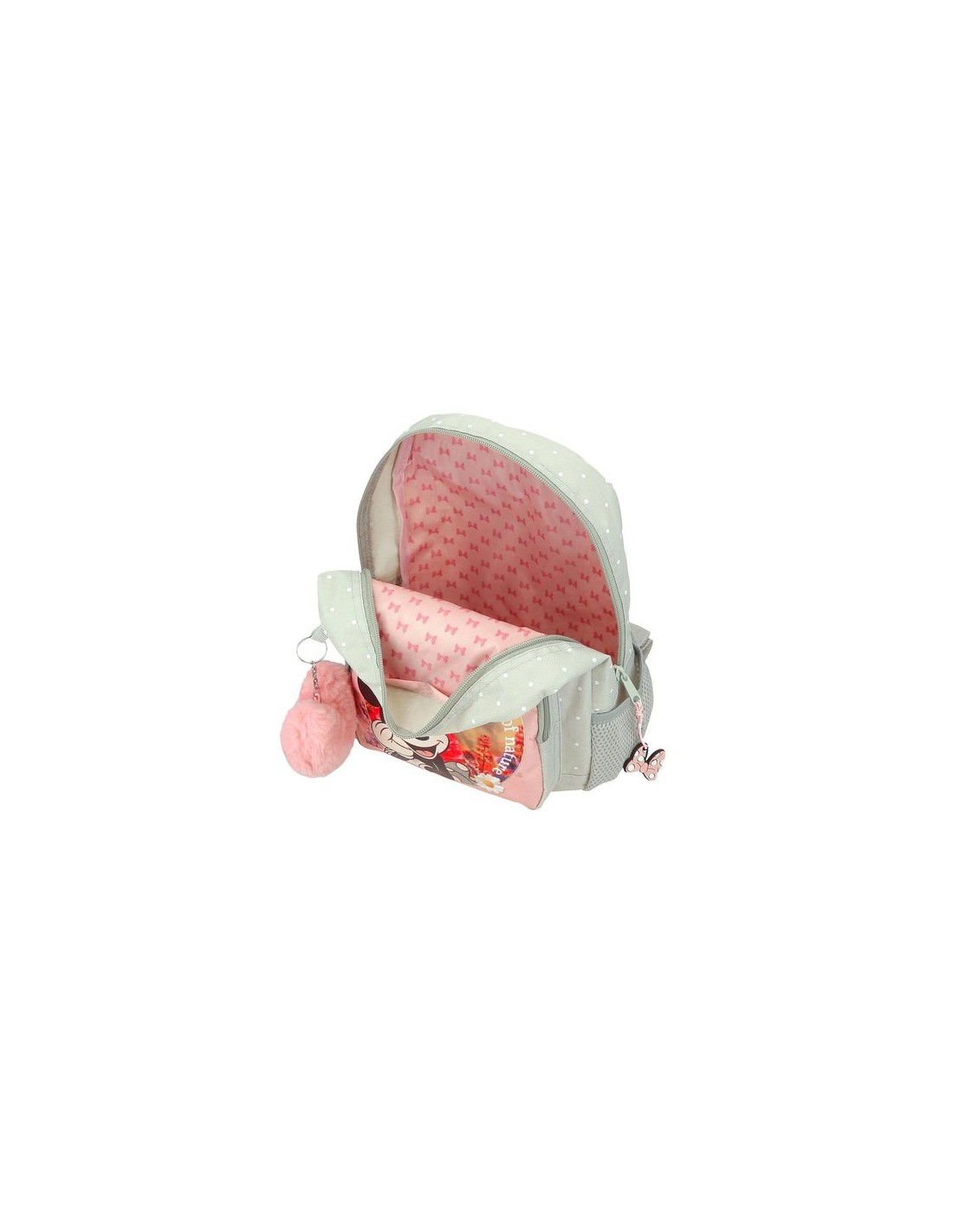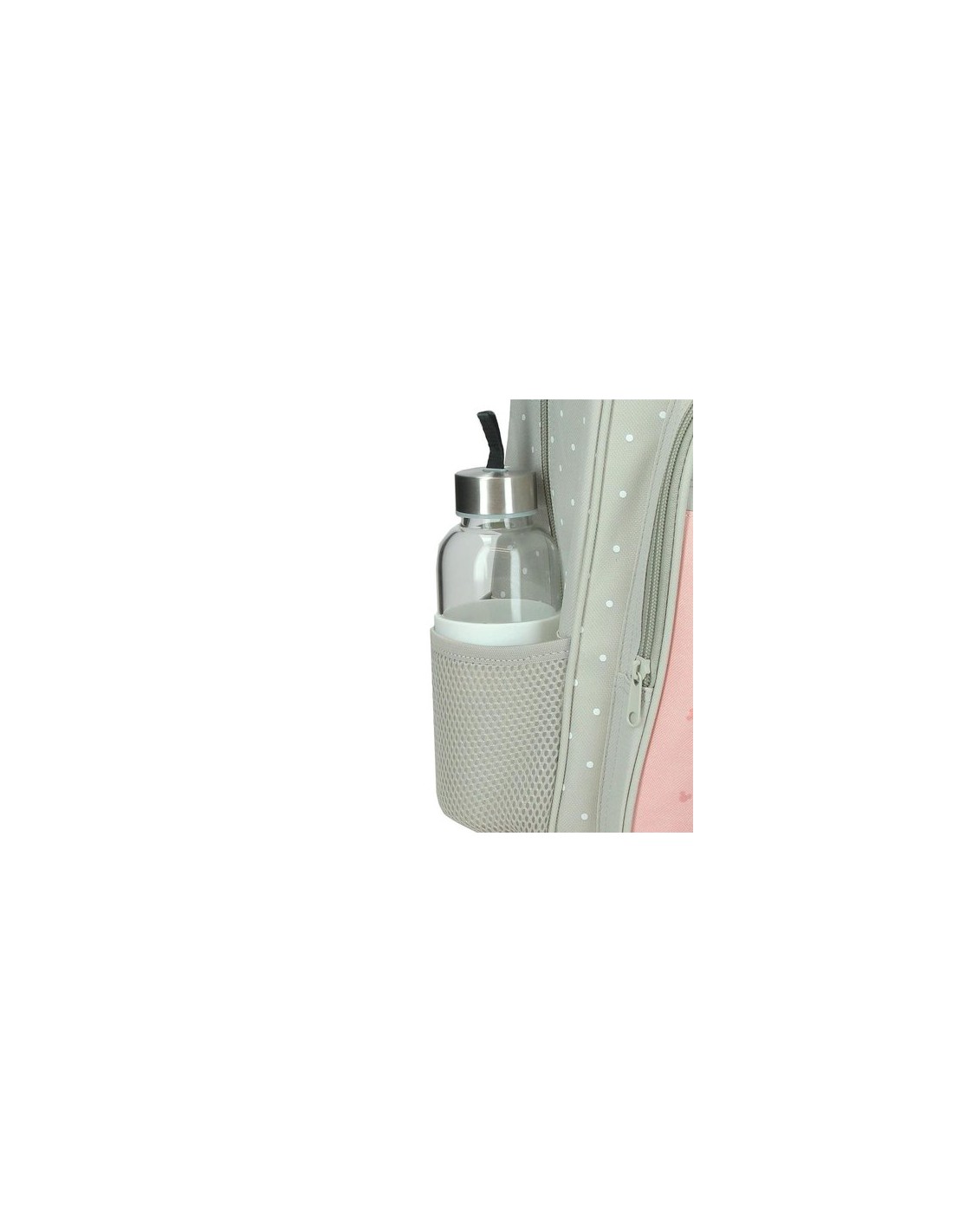 Un bolsillo frontal y dos bolsillos laterales de red para guardar los pequeños accesorios y el almuerzo.