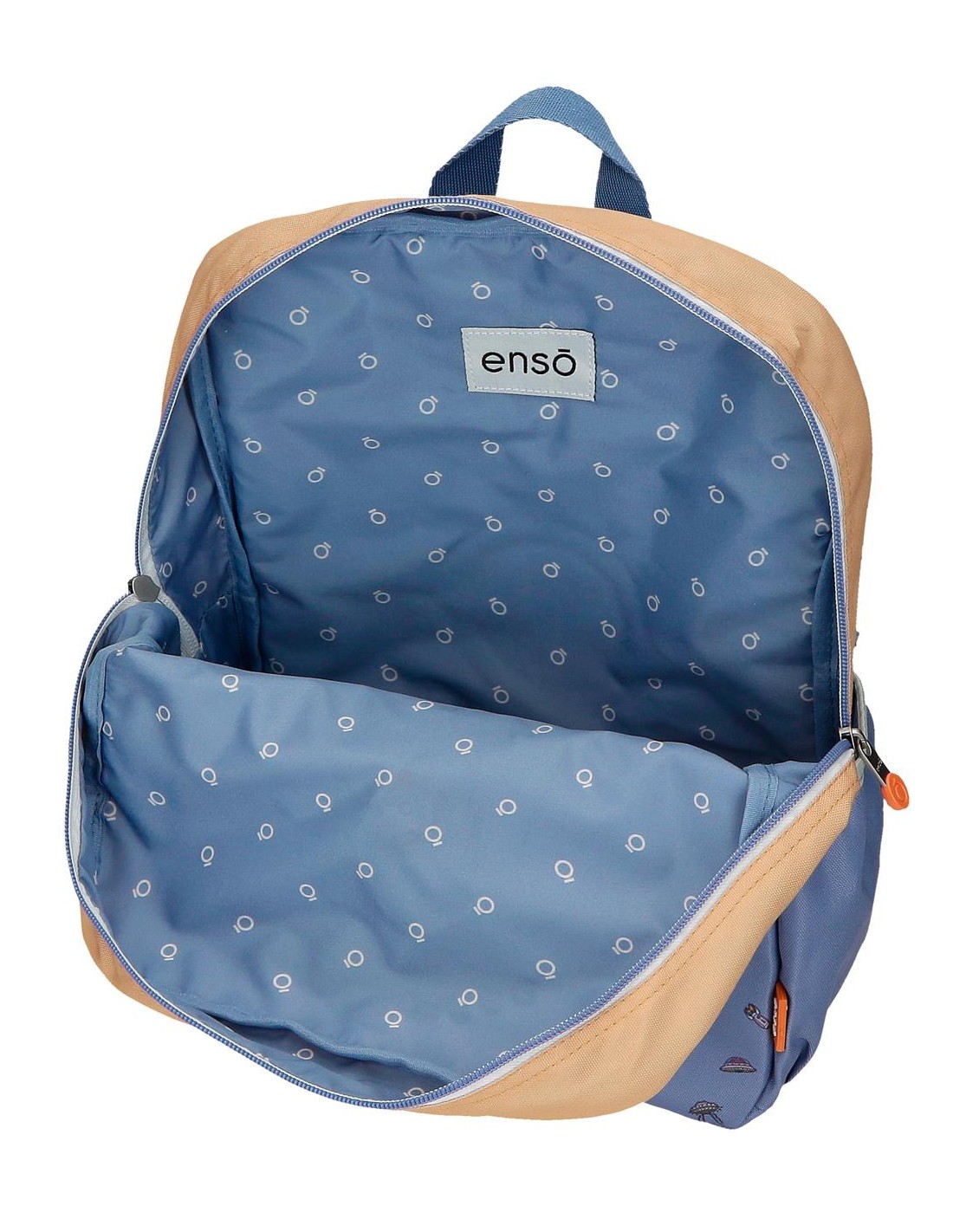 Incluye un bolsillo frontal y dos bolsillos laterales, ideal para llevar la botella de agua, el almuerzo o pequeños accesorios escolares siempre a mano.