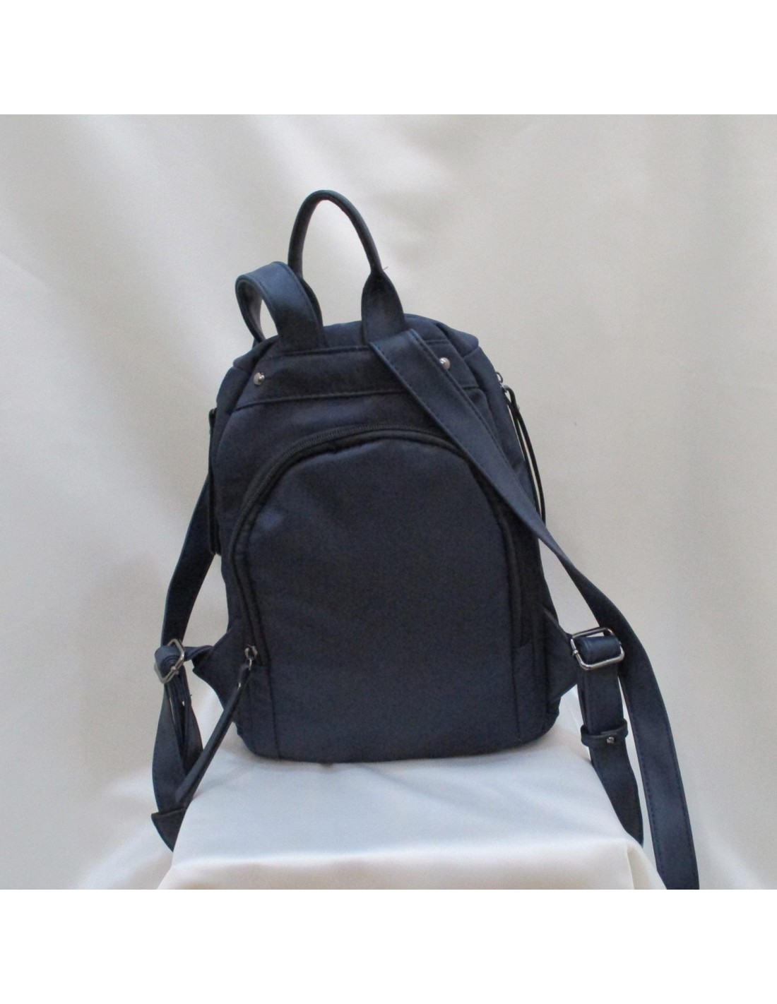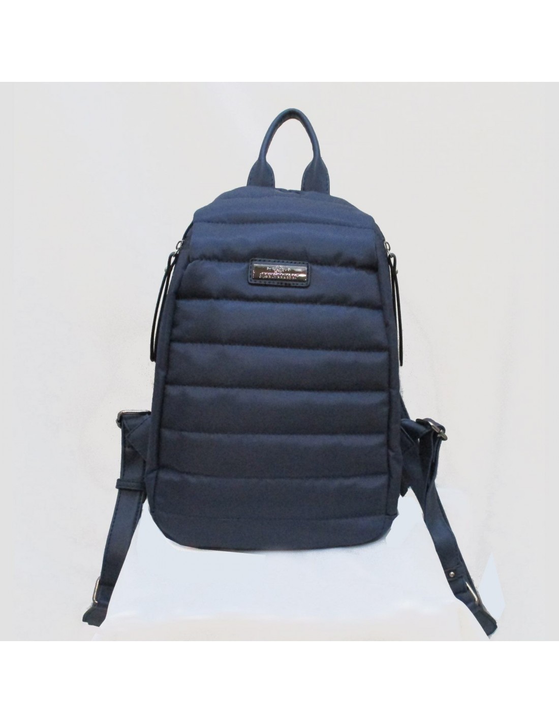 Mochila antirrobo, tamaño medio, acolchada. Con bolsillos en los laterales. Abertura principal en la parte trasera.