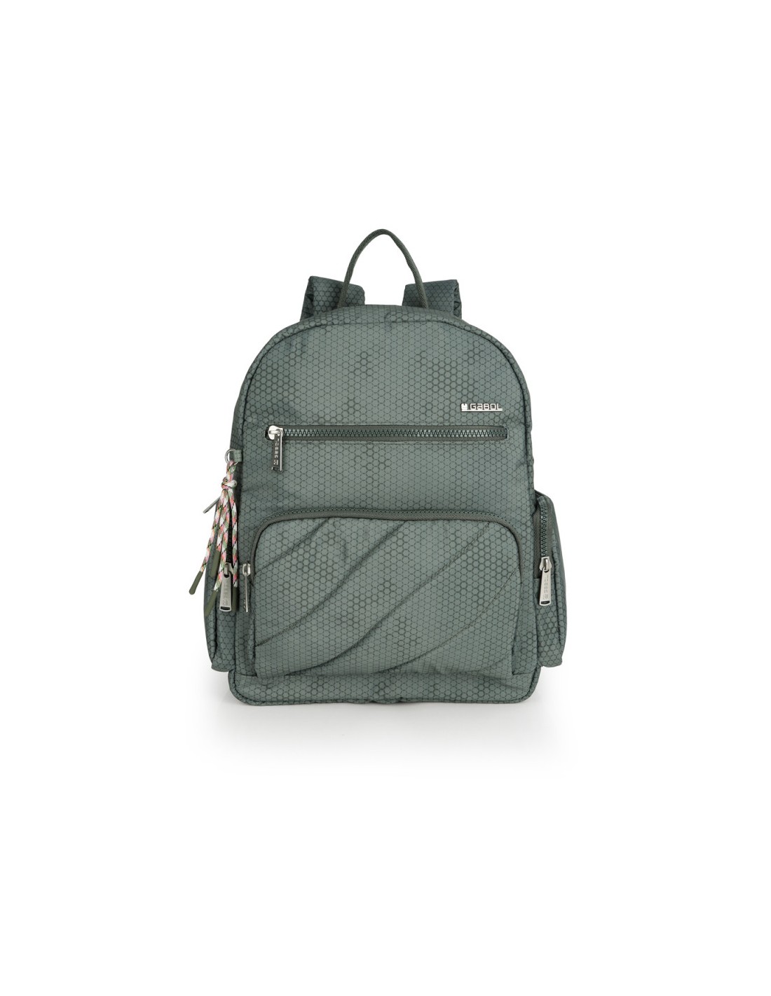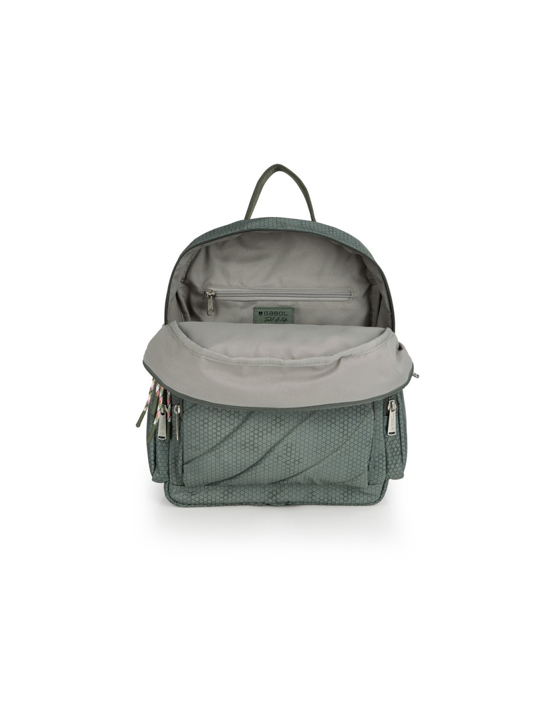 Mochila de poliéster. Material resistente al agua. Fabricado con materiales libres de plásticos PVC. Medidas 29x33x13 cm.