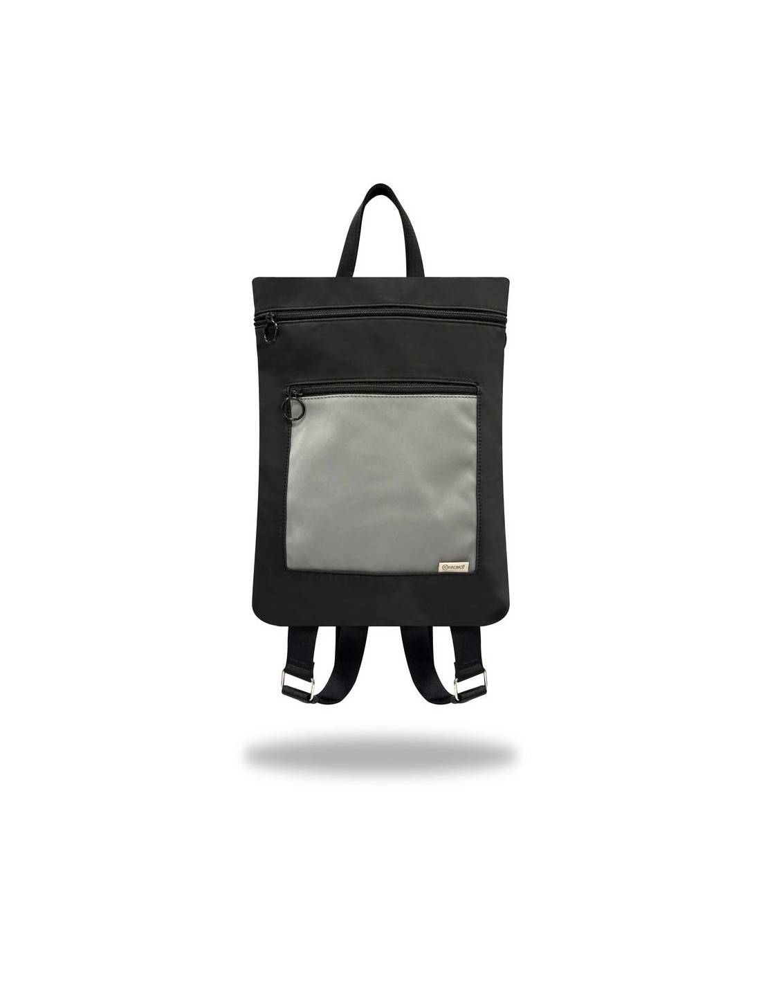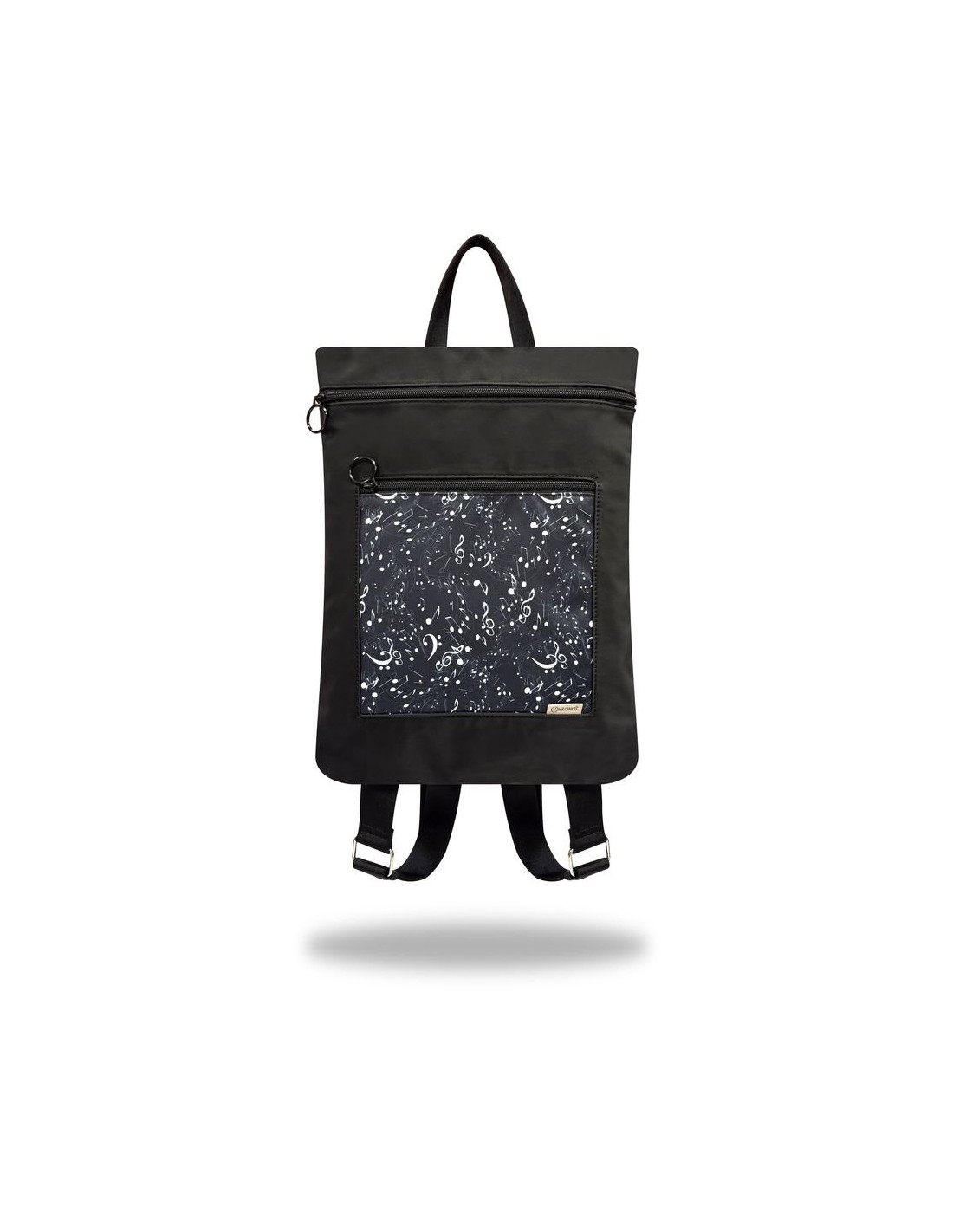 Mochila reversible mujer Kronos color negra con bolsillos exteriores en color gris o notas musicales.