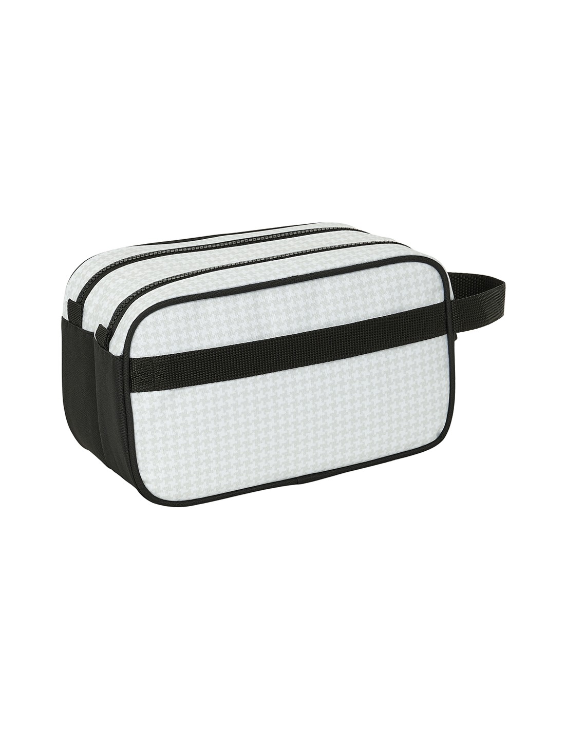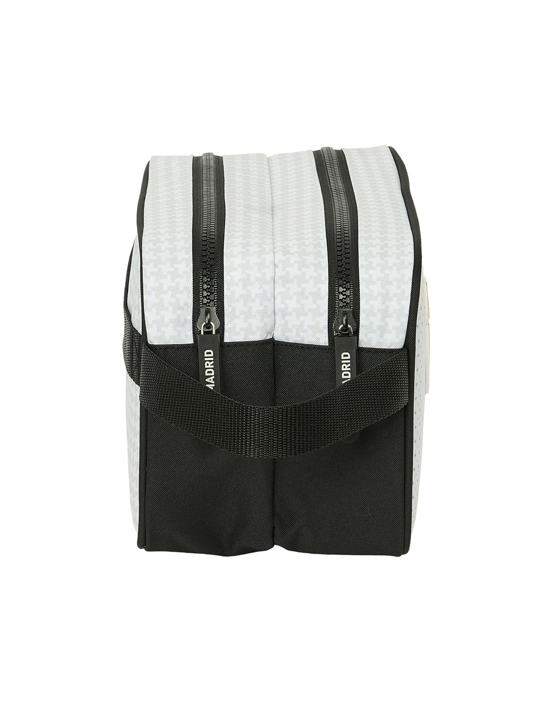 Dos departamentos de gran capacidad, cierres de cremallera con tiradores de caucho con leyenda Real Madrid con relieve 3D