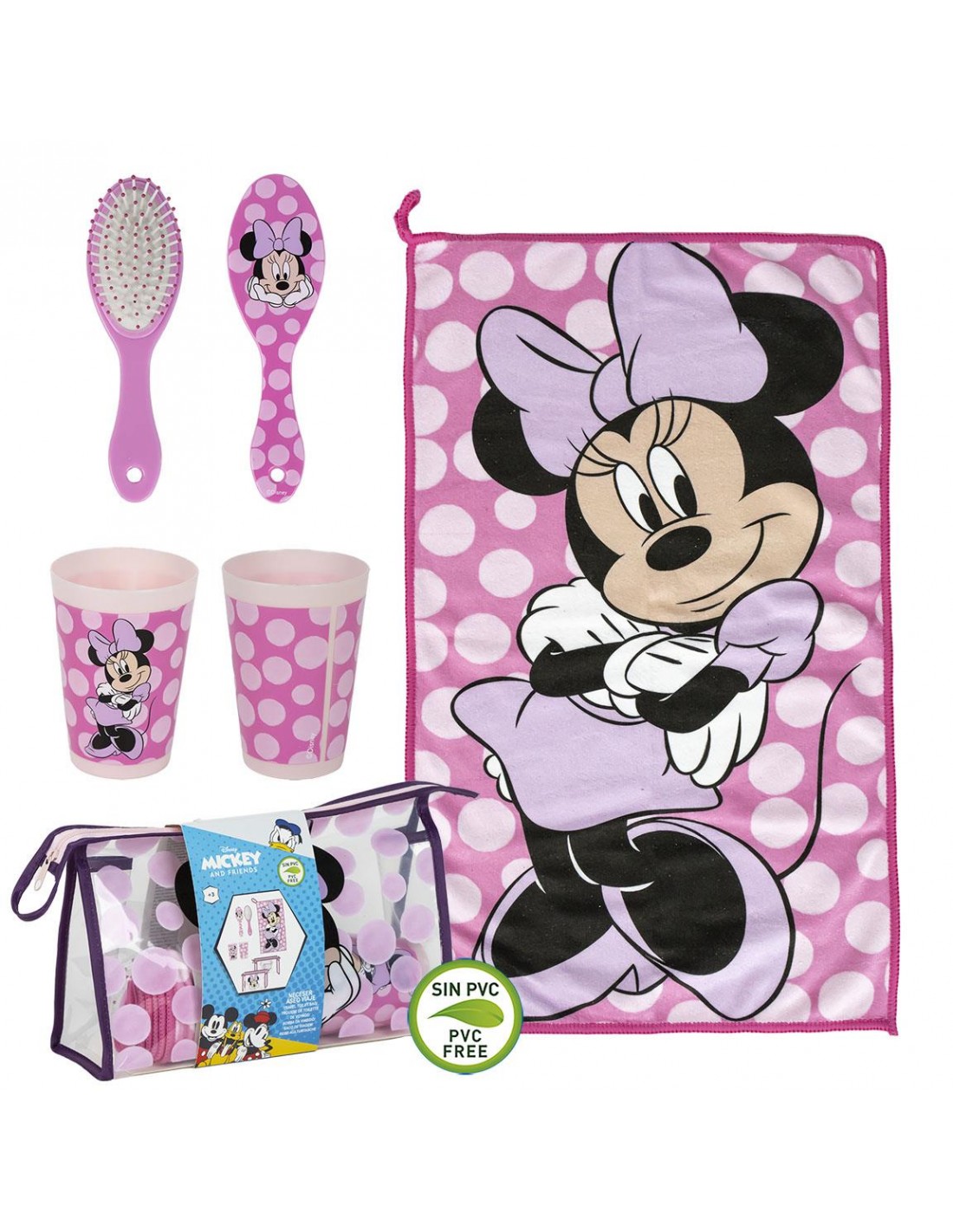 Neceser aseo viaje minnie vaso, cepillo y toalla.