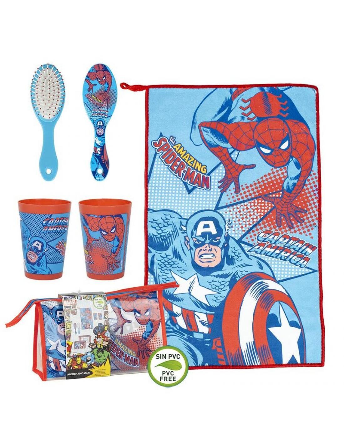 Neceser aseo viaje los vengadores avengers Marvel, vaso, cepillo y toalla.