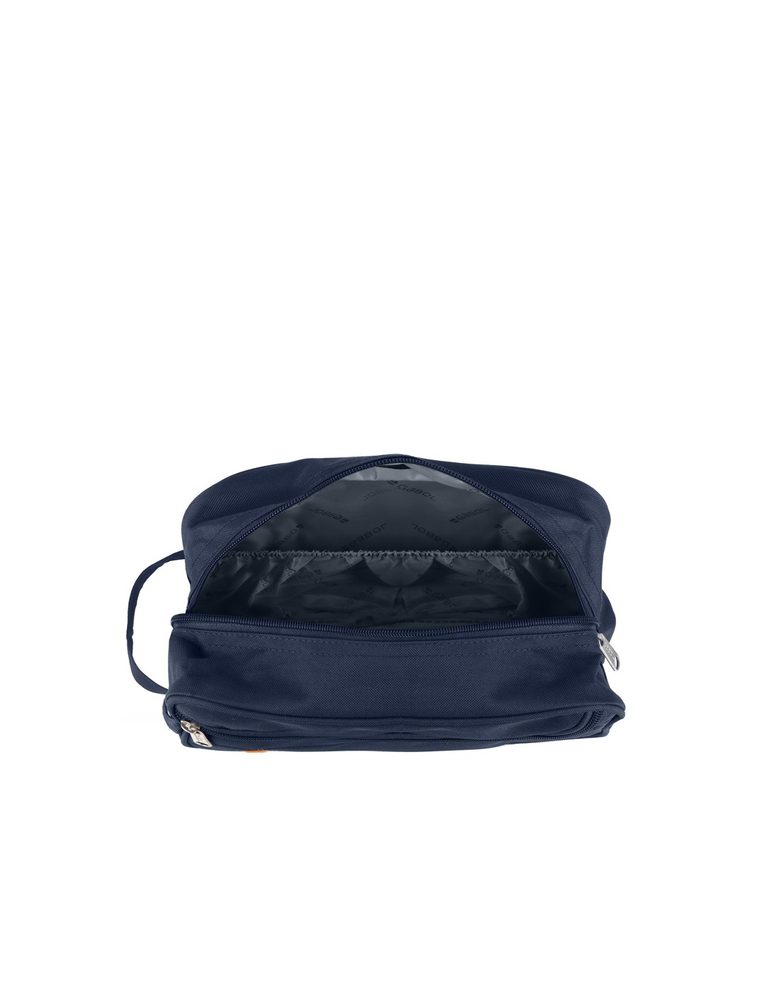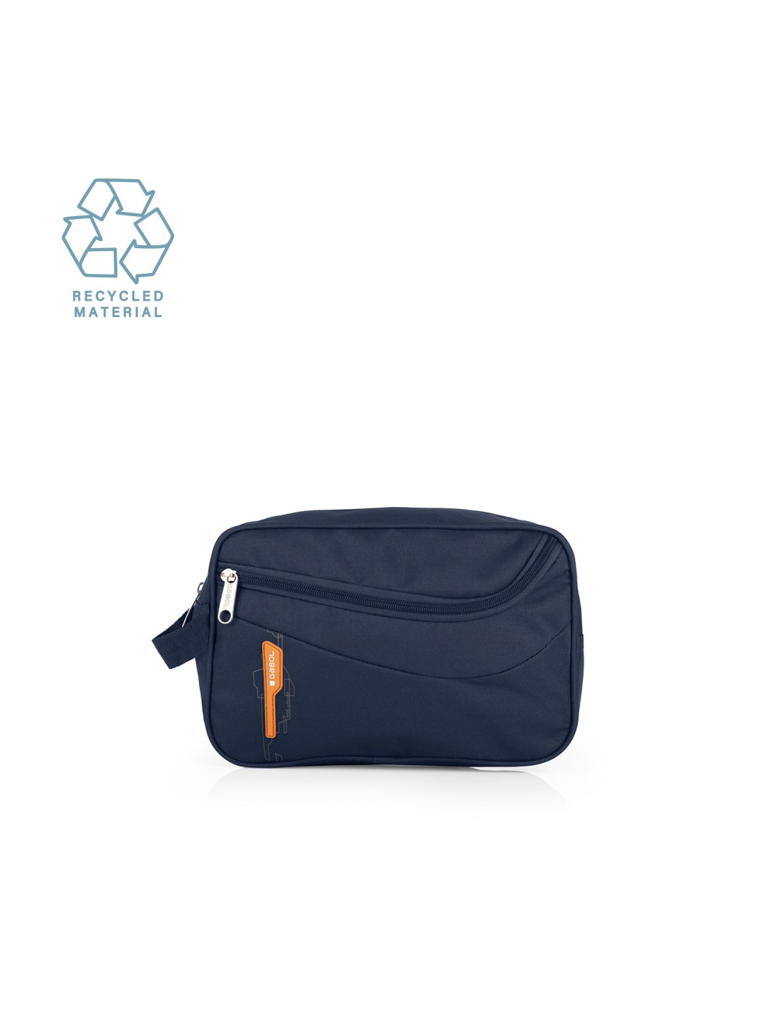 Neceser blando fabricado con material de plástico reciclado. Interior forrado y con varios bolsillos.