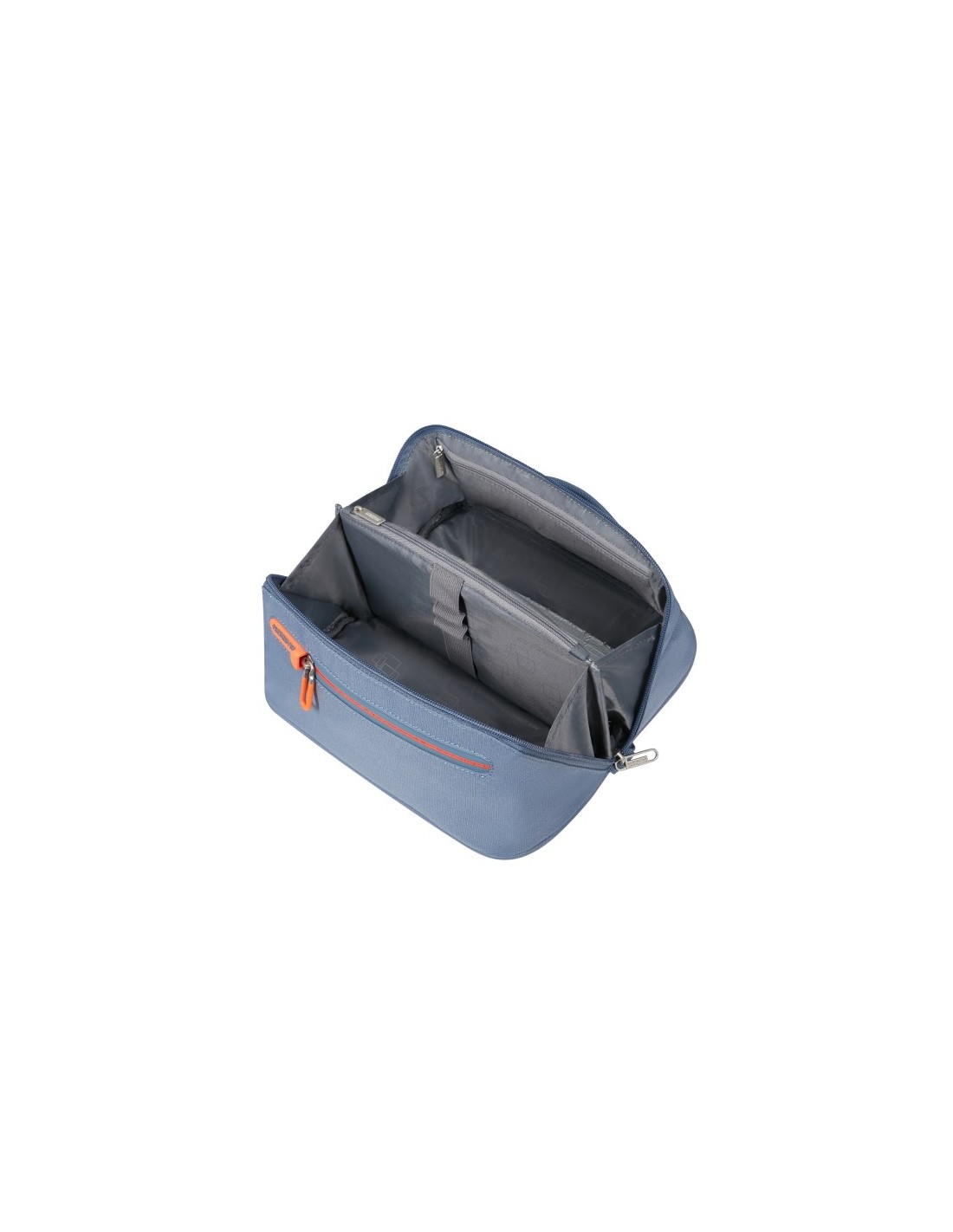Neceser compacto de 4 L en poliéster, con un bolsillo frontal, doble compartimento interior con cremallera, bolsillo de líquidos y lazos elásticos para organizar