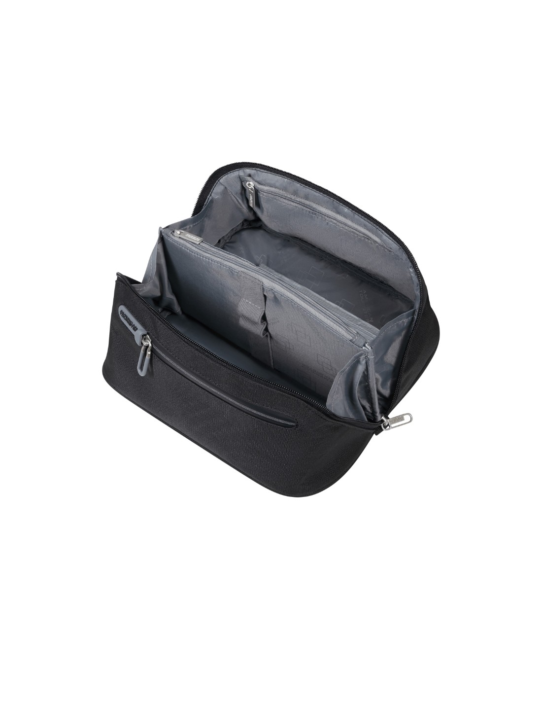 Neceser compacto de 4 L en poliéster, con un bolsillo frontal, doble compartimento interior con cremallera, bolsillo de líquidos y lazos elásticos para organizar