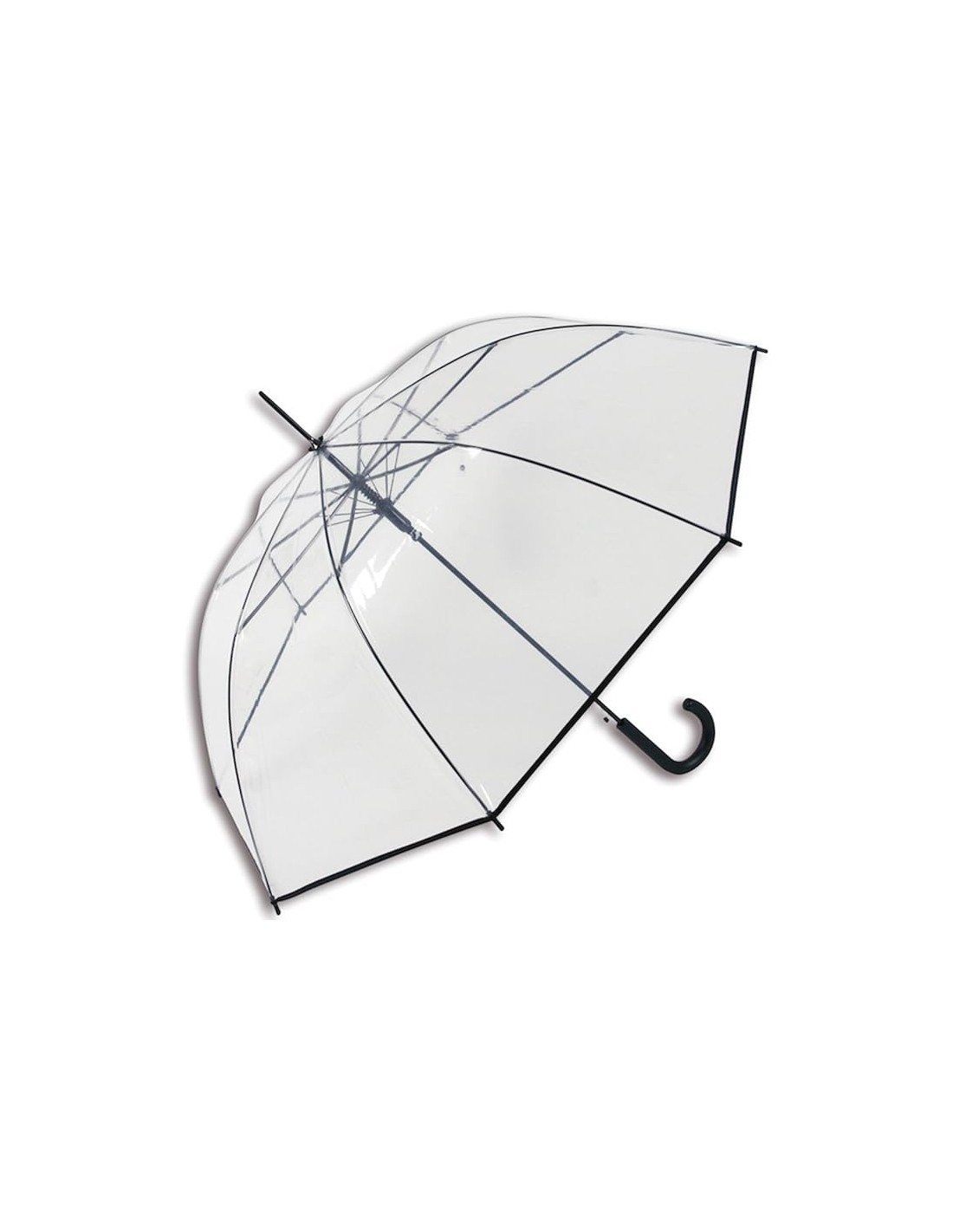 Paraguas transparente de señora con un ribete inferior de color negro. Un paraguas de calidad perfecto para cualquier ocasión.