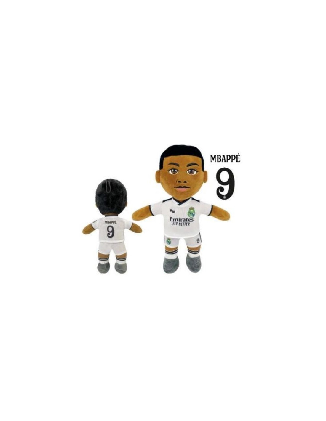 Divertido peluche con diseño del jugador Mbappé del Real Madrid. Ideal para tu colección o como regalo original para aficionados de este equipo.