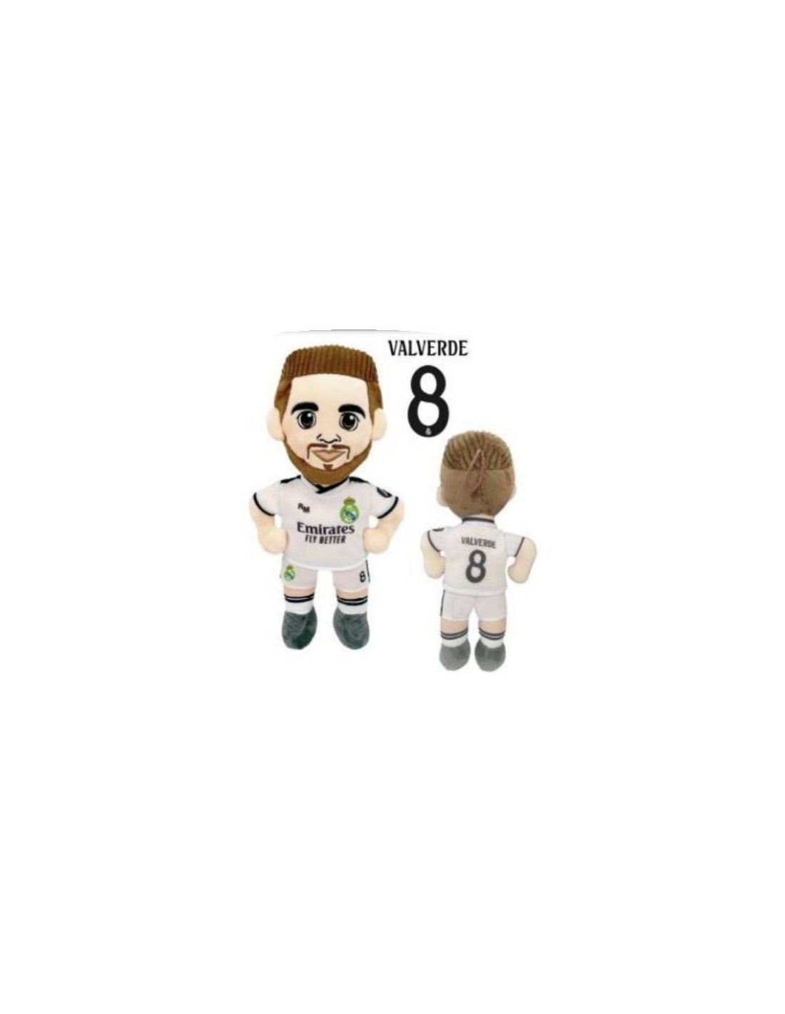 Divertido peluche con diseño del jugador Valverde del Real Madrid. Ideal para tu colección o como regalo original para aficionados de este equipo.
