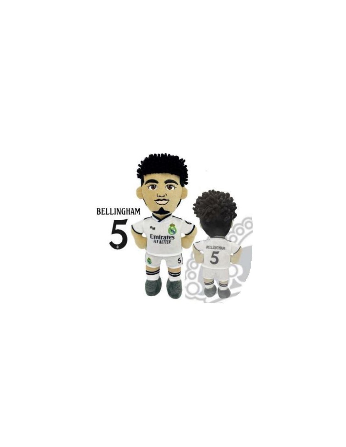 Divertido peluche con diseño del jugador Bellingham del Real Madrid. Ideal para tu colección o como regalo original para aficionados de este equipo.