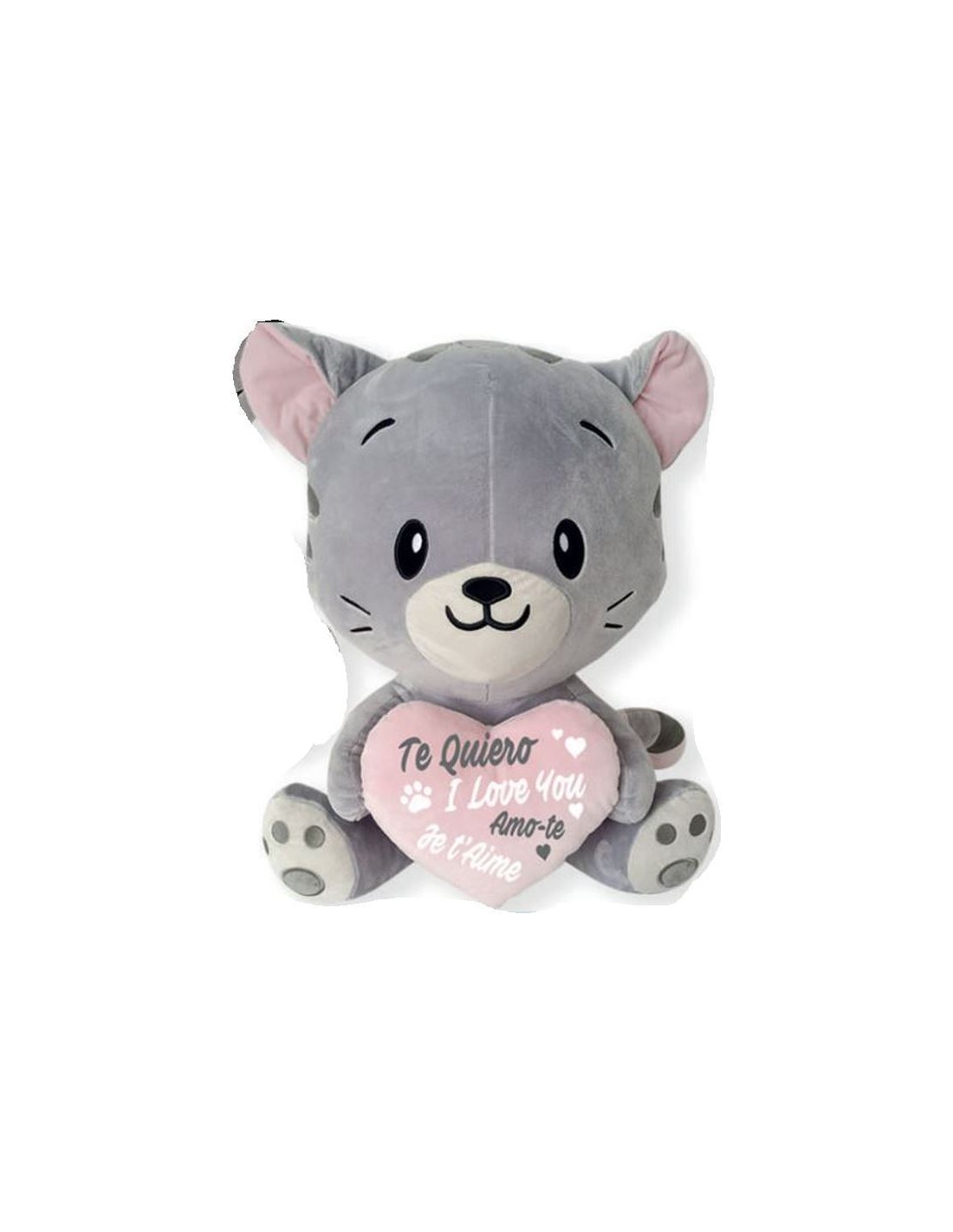 PELUCHE GATO GRIS CON CORAZÓN 40 CM