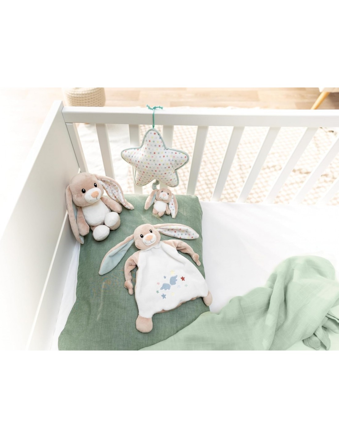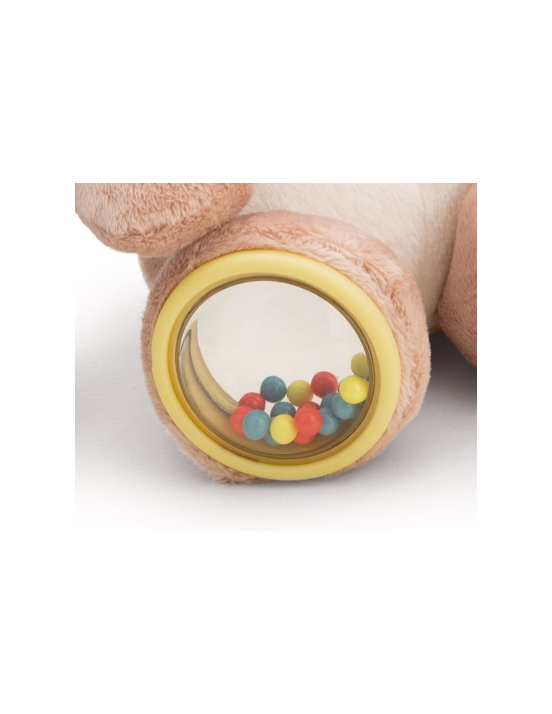 DIVERSIÓN Y ACTIVIDAD: El conejito ángel guardián Fjella encanta con un anillo mordedor en la oreja, un sonajero con espejo y cuentas de colores, y una