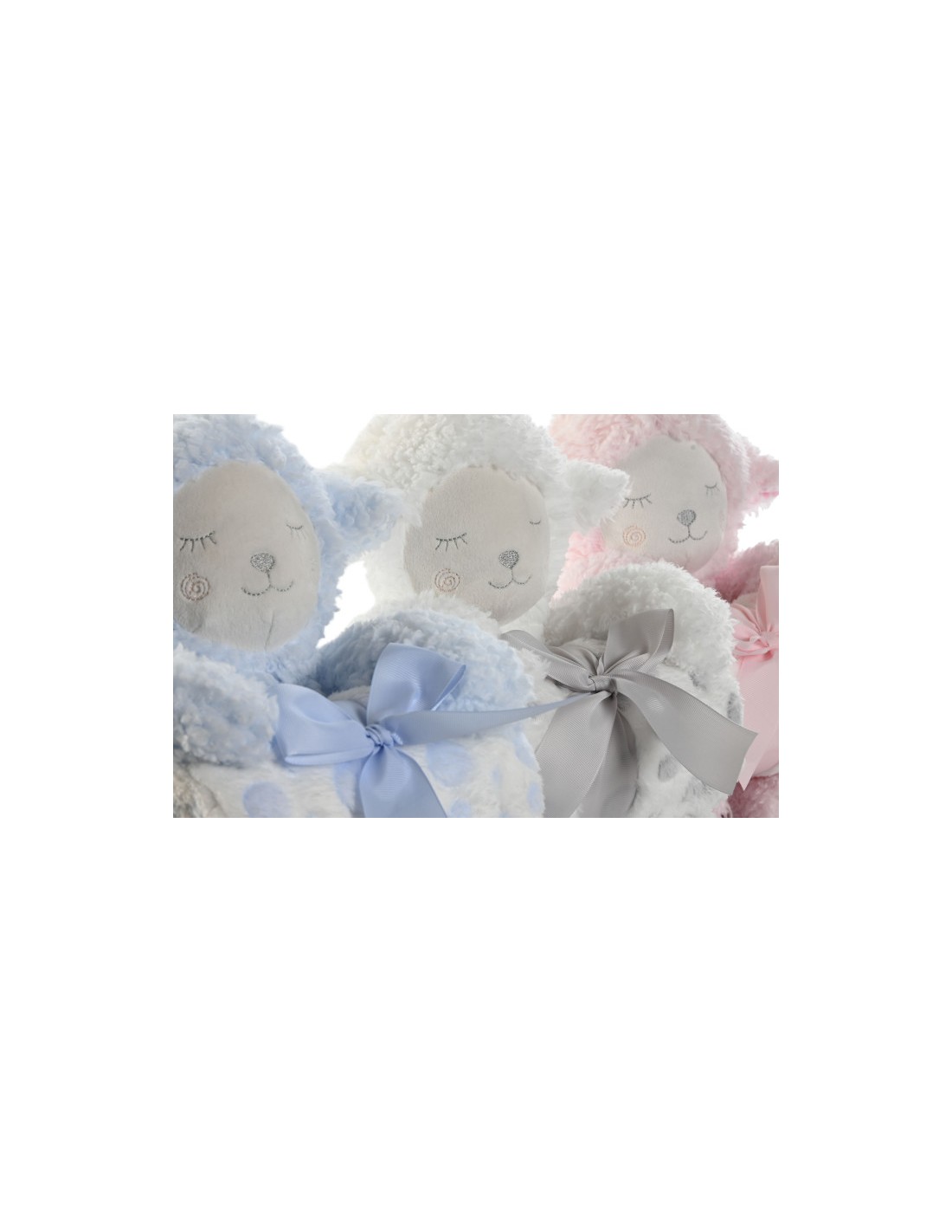 Set completo: incluye peluche ovejita de 25 cm con mantita polar suave, presentado con lazo decorativo.