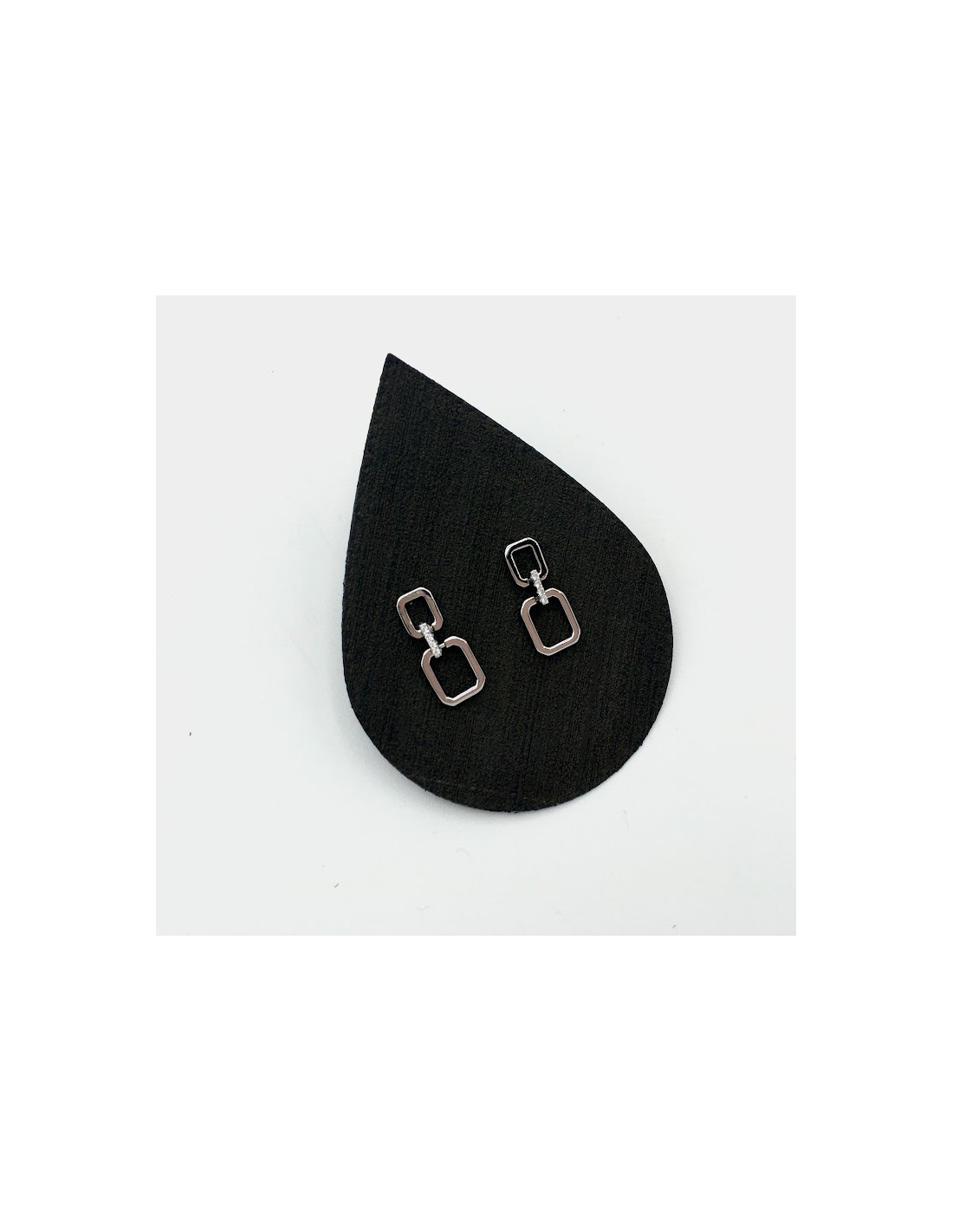 Pendientes plata de ley 925, doble cuerpo cuadrados unidos con una barrita de circonitas.
