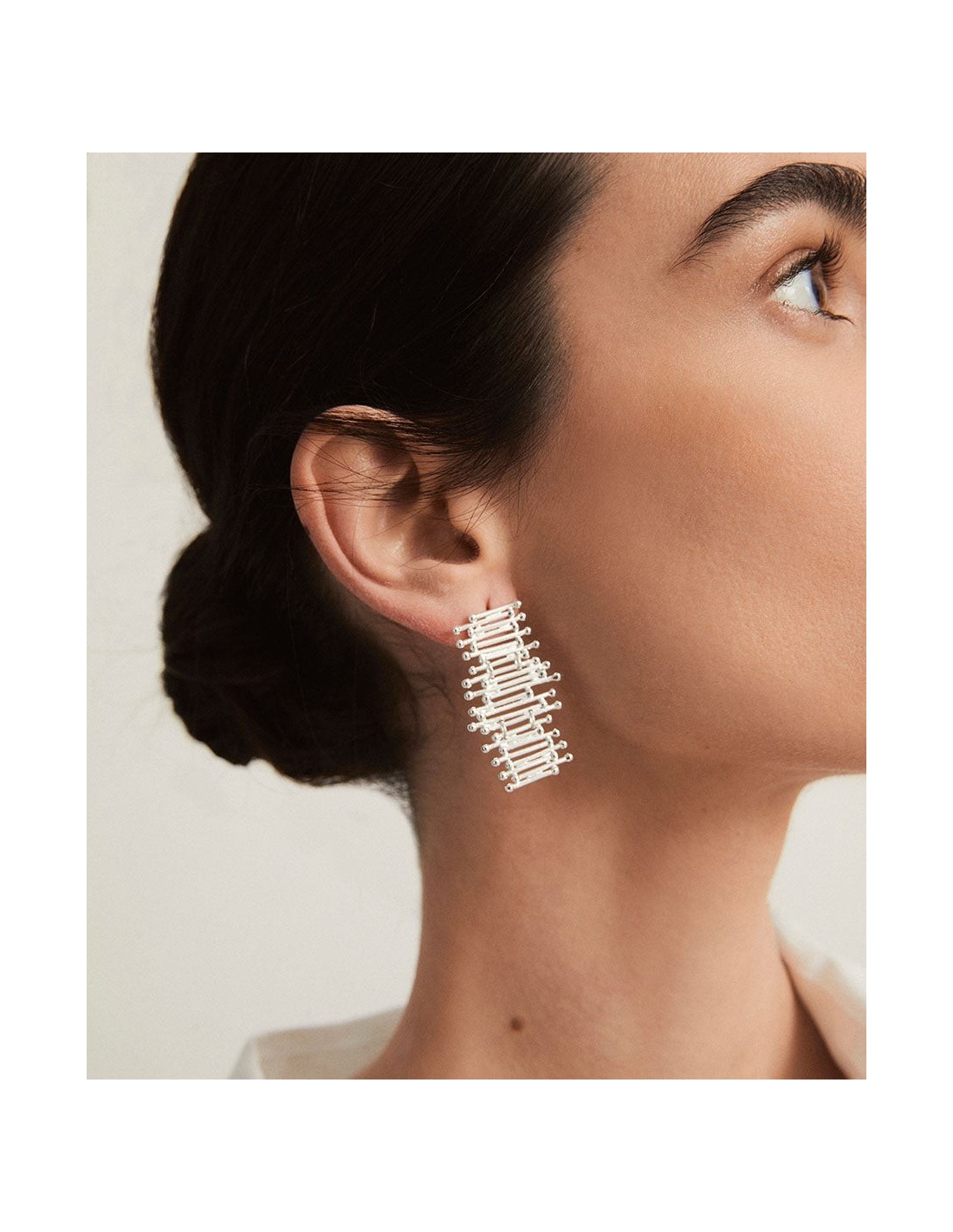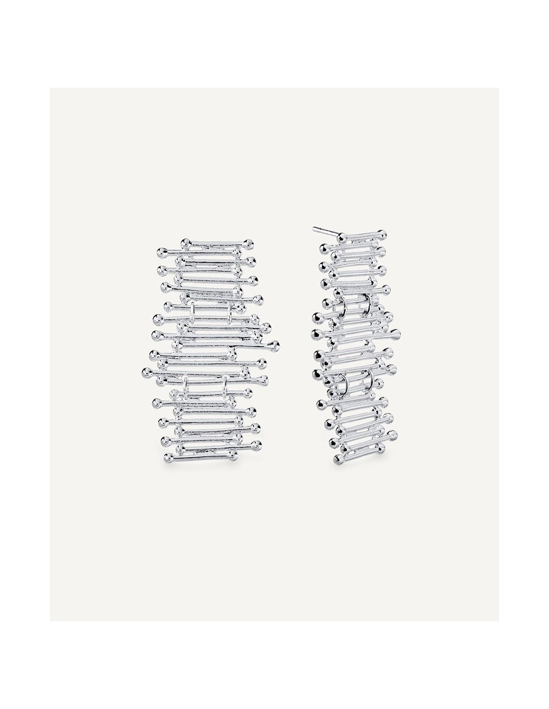 Pendientes Redosa colección Esenciales chapado Plata de primera Ley largos con tiras en posición horizontal y cierre presión.