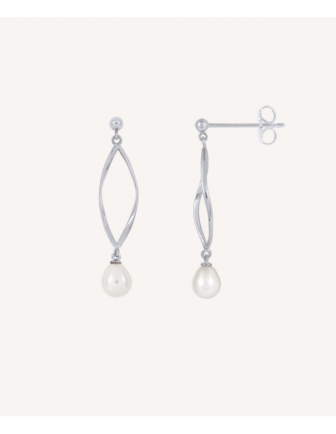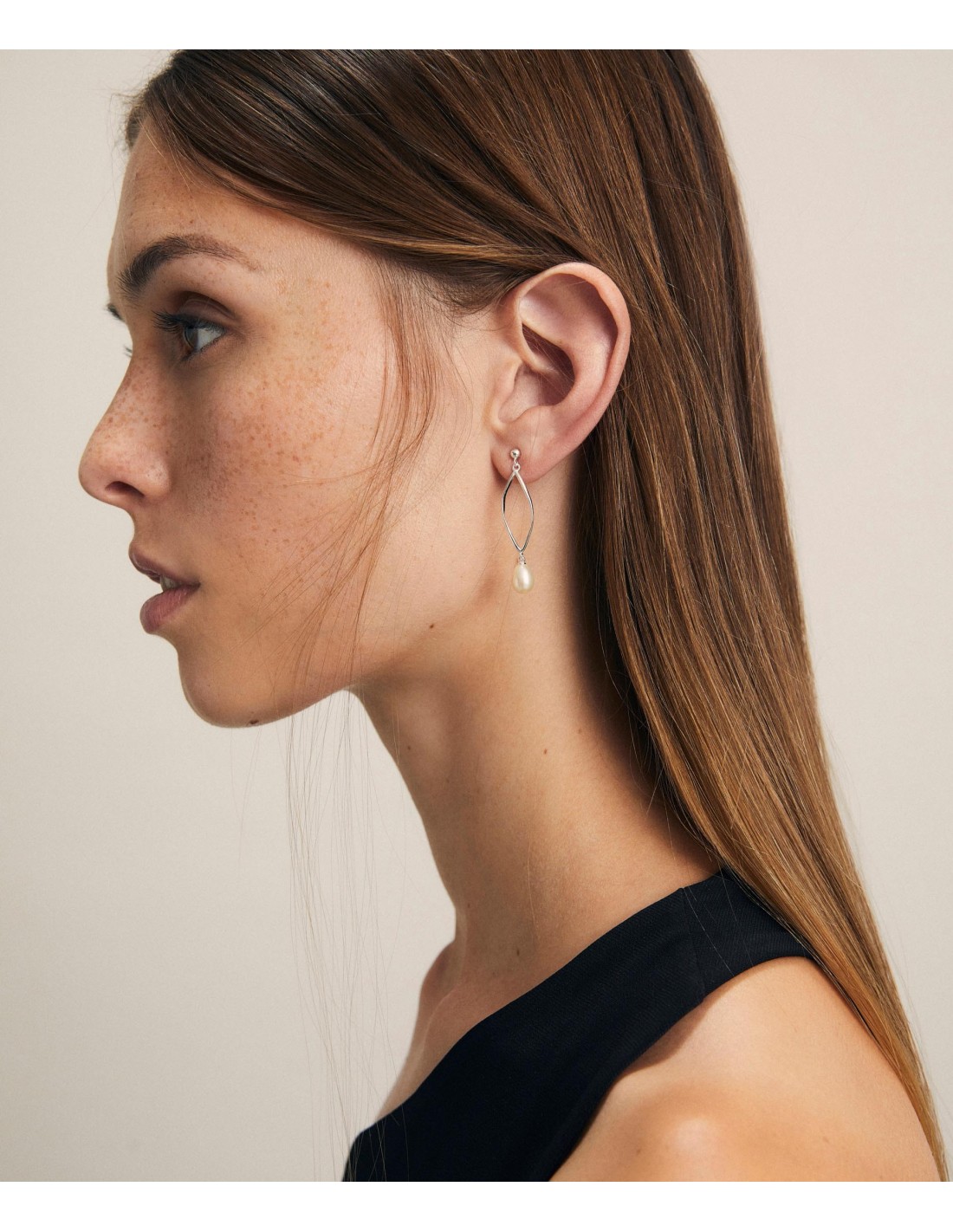 Pendientes Vidal & Vidal Colección Básicos Plata de Ley 925 largo con perla cultivada de 7mm y y cierre presión.