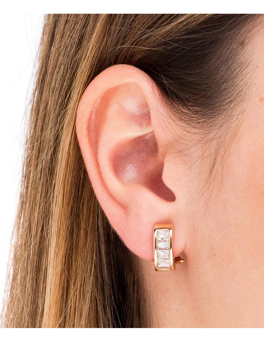 Pendientes Colección Essentials Chapado en Oro 18 Kt Circonitas baguette.
