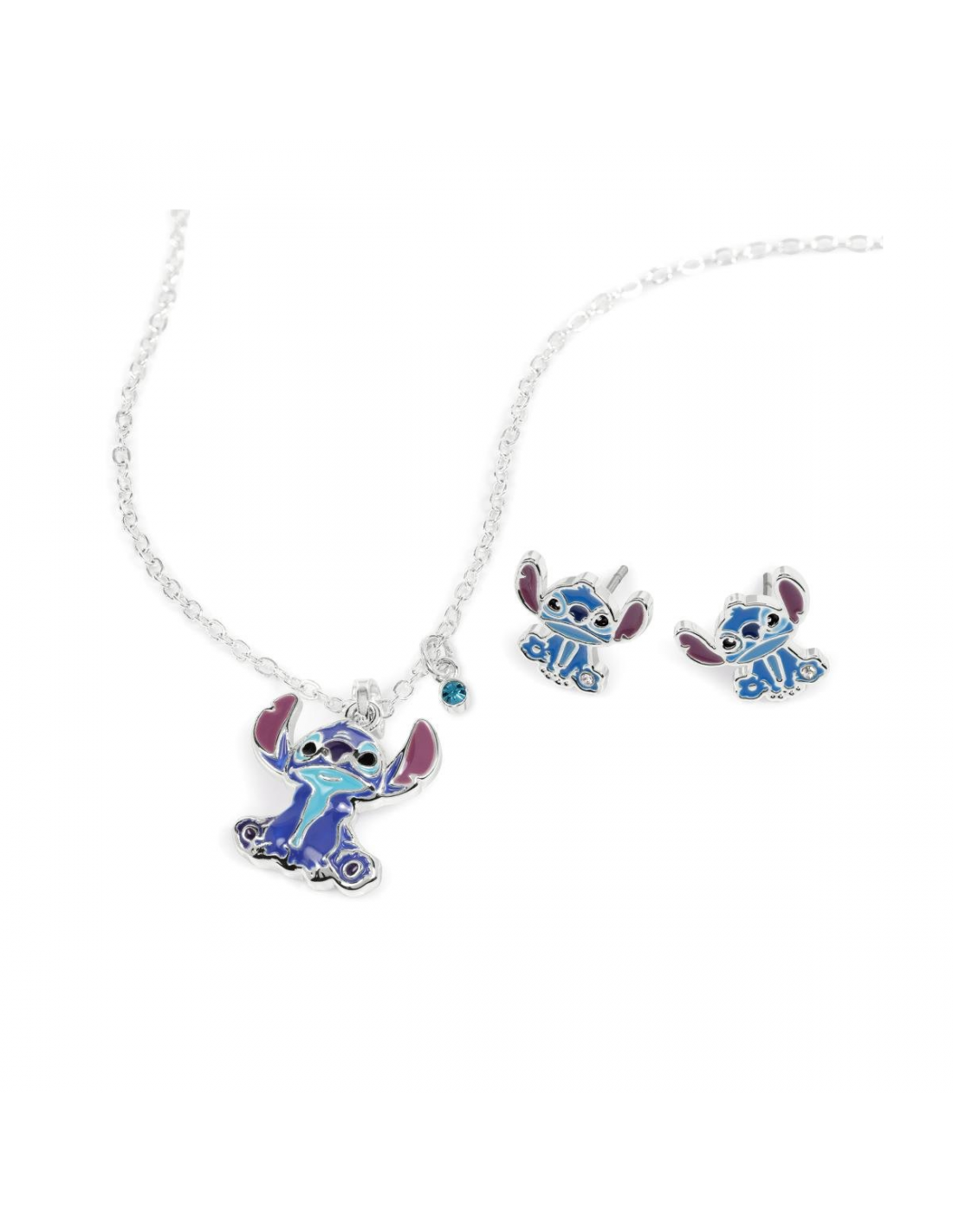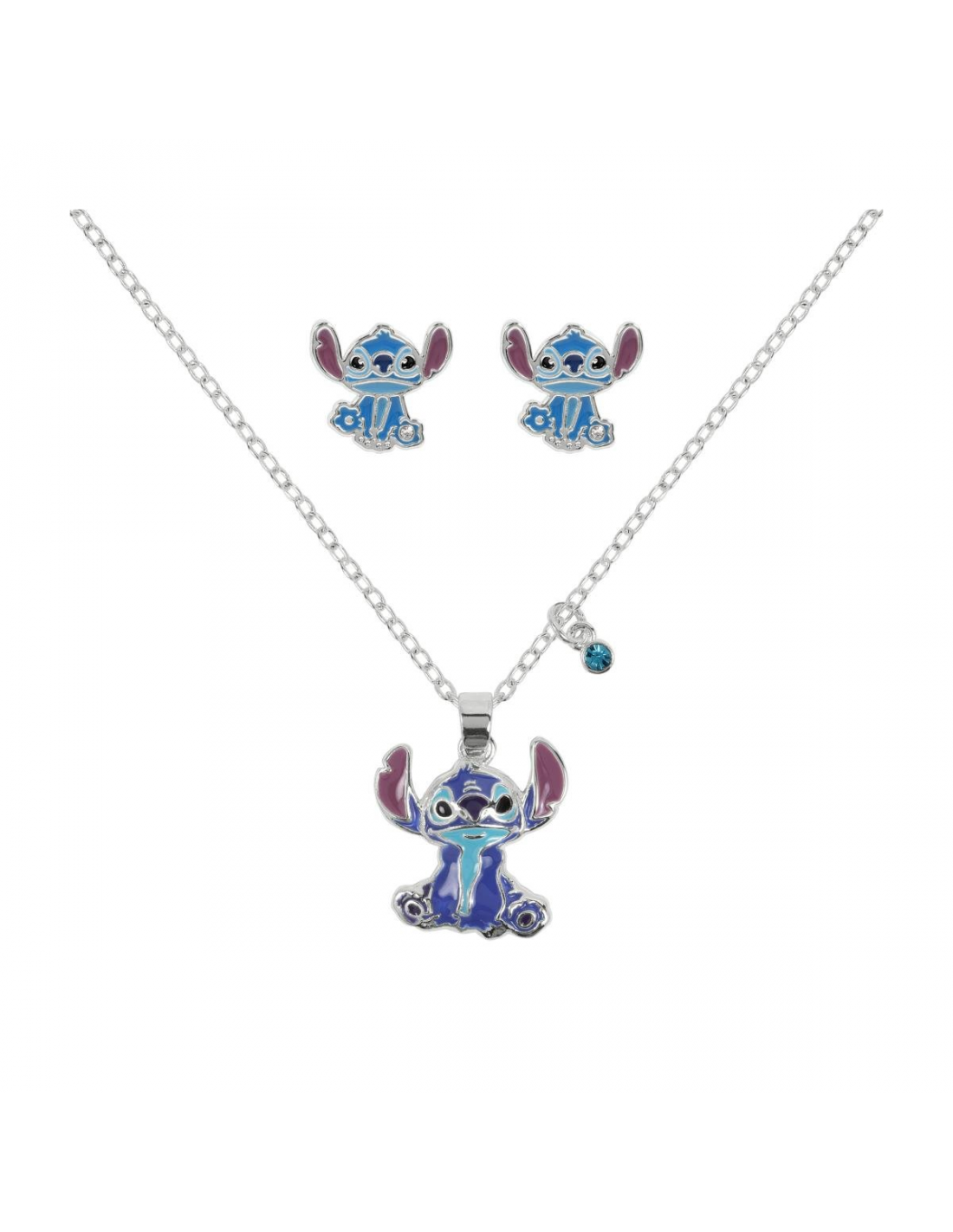 Set de collar y pendientes fabricados en bronce. Diseño de Stitch.