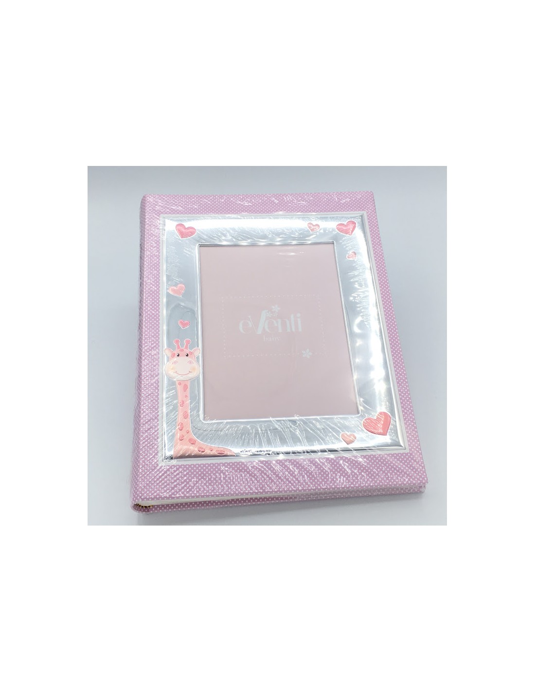 Album de fotos con marco de plata de ley laminada, jirafa con esmalte de color rosa o azul.