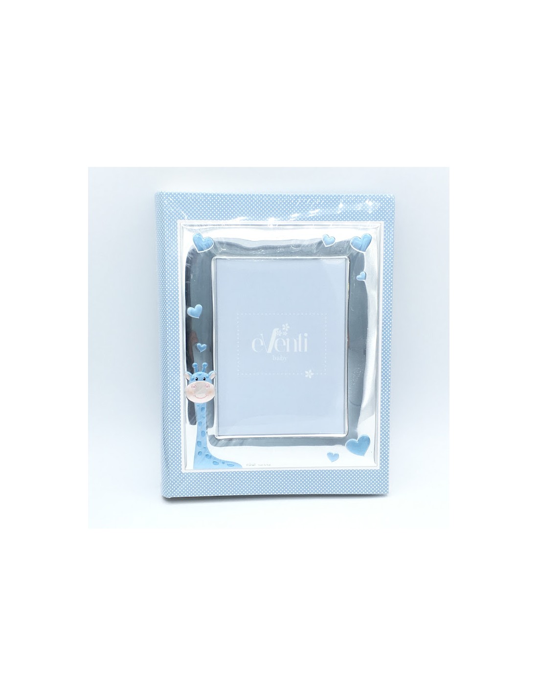 Album de fotos con marco de plata de ley laminada, jirafa con esmalte de color rosa o azul.