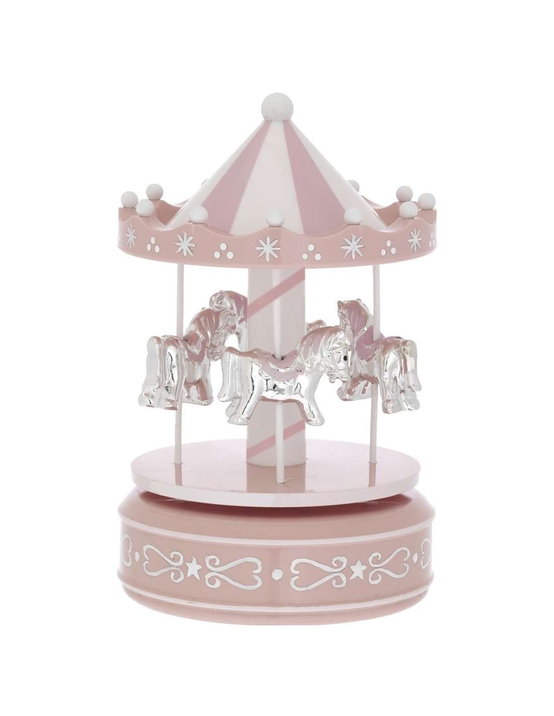 CARRUSEL MUSICAL CABALLITOS PLATA Y ROSA