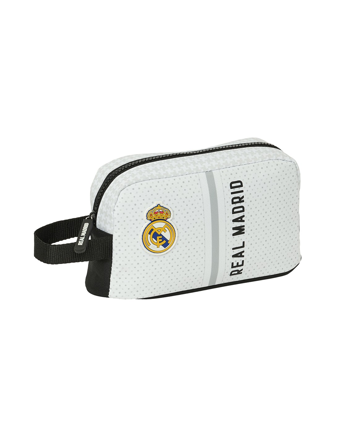 Frontal decorado con escudo de goma con relieve 3D y leyenda Real Madrid
