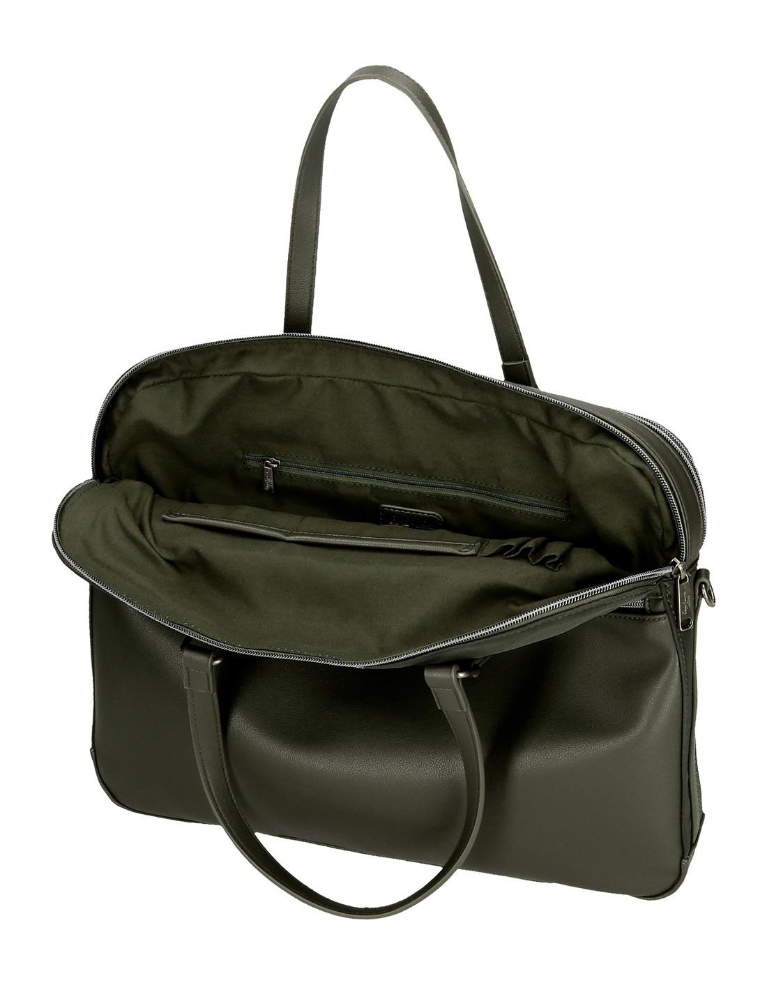 Bolso para ordenador de 41x30x10 cm. fabricado en poliéster y con detalles en piel sintética.