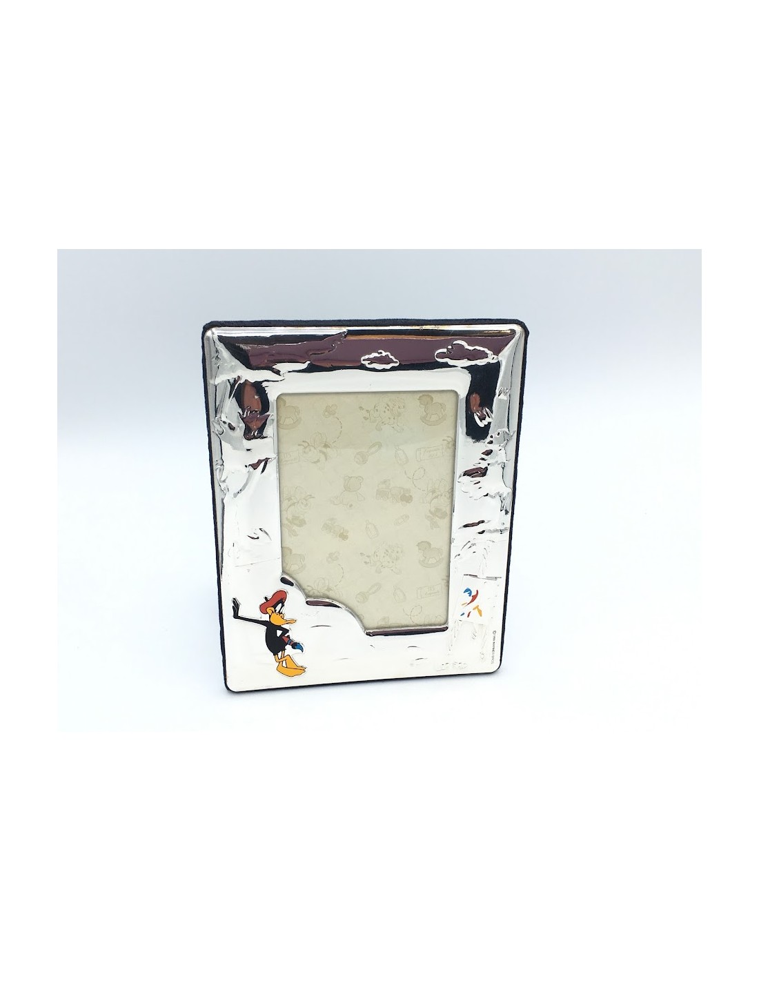 Portafotos plata de ley, Pato Lucas esmalte. Trasera terciopelo azul marino.