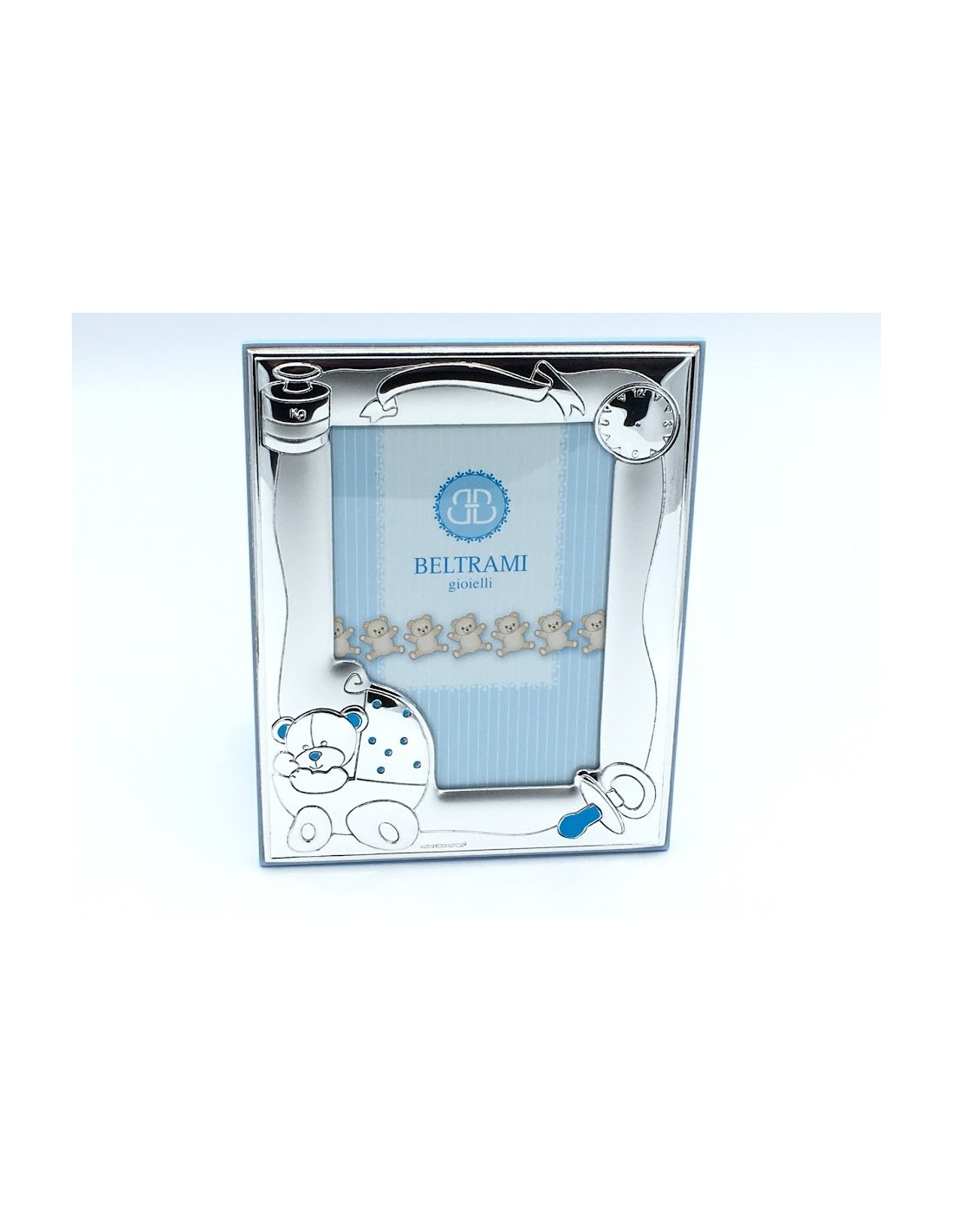 Portafotos plata laminada nacimiento para poner peso, nombre y hora, parte trasera madera en color rosa , medidas foto 13 x 18 cm , medida total 23.5 x 19 cm