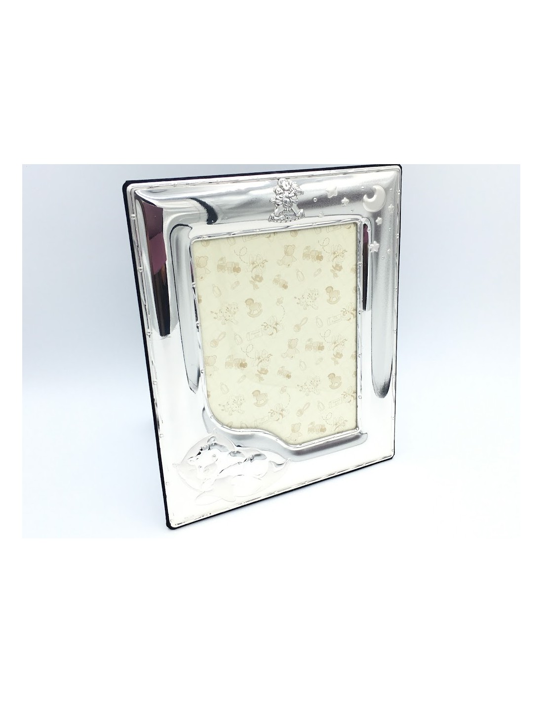 Portafotos plata laminada, parte trasera en terciopelo negro, medida foto 14 x 18 cm ,medida total 20 x 25 cm.