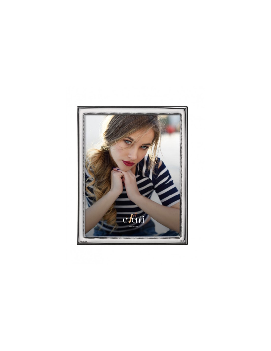Portafotos pequeño laminado en plata. Trasera de madera. Tamaño foto 5 x7 cm. Tamaño total 7x10cm.