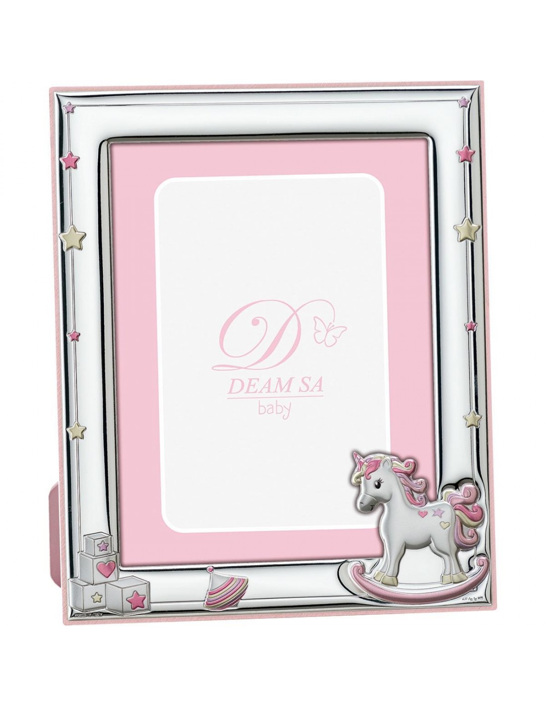 Portafotos unicornio en balancín con esmalte color.