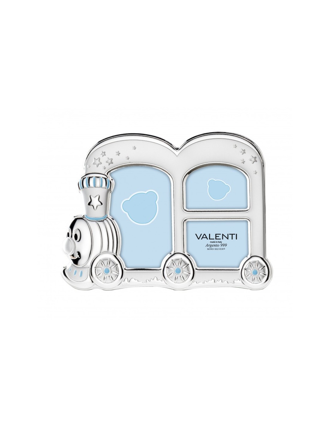 PORTAFOTOS MUSICAL TREN ESMALTE ROSA PLATA DE LEY BILAMINADA