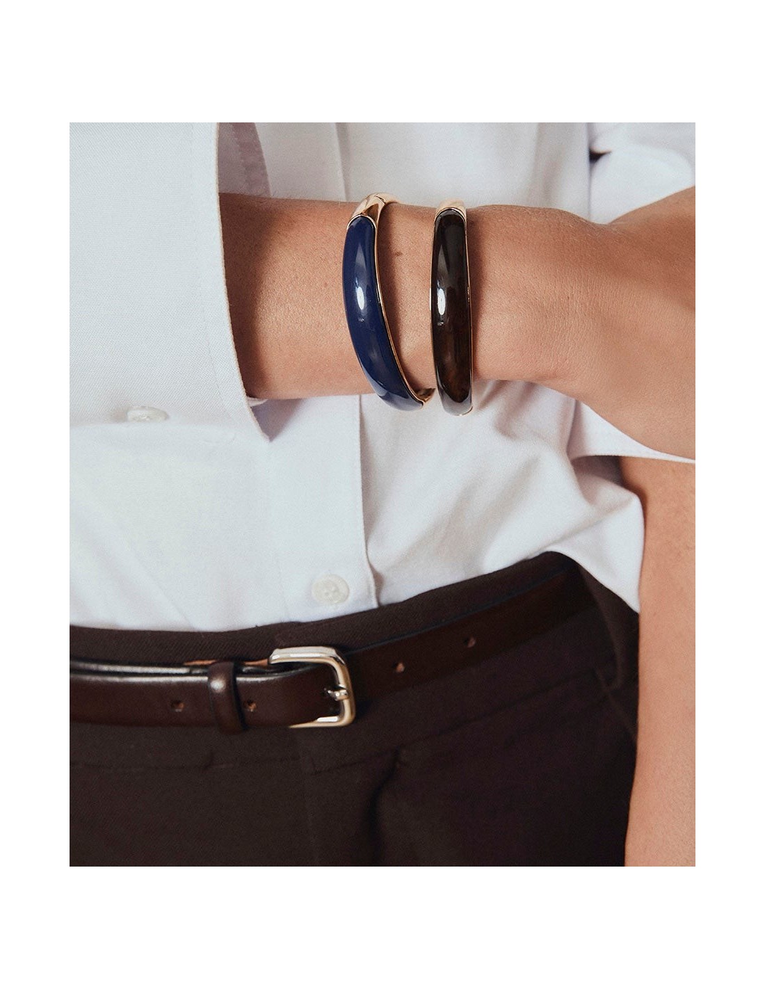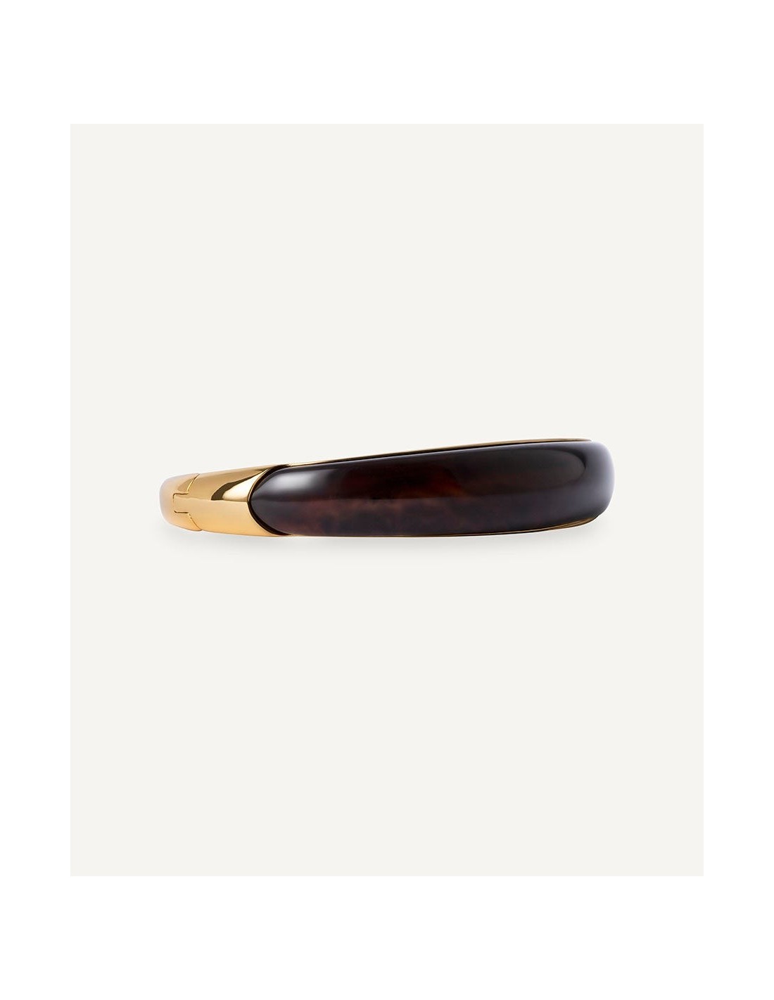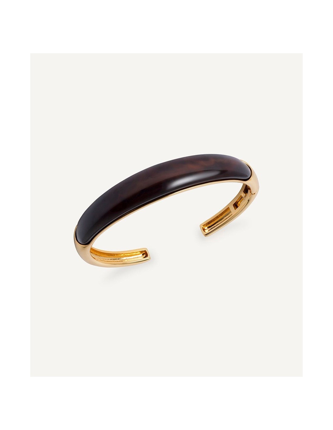 Brazalete rígido Coffee bañado con una gruesa capa de oro macizo de 18 kt, lo que garantiza una mayor durabilidad. Destaca por el acetato y la resina en tono marrón, que aportan un aire de sofisticación en clave neutra. Tiene una medida de 60 x 50 mm. Pertenece a la colección Bold, inspirada en las tendencias actuales, con joyas de diseño y siluetas renovadas para una línea que trae color, donde dominan los tonos camel, marrón, caramelo y azul oscuro. Son piezas que, sin levantar la voz, transmiten un aire seguro, confiado y decidido.