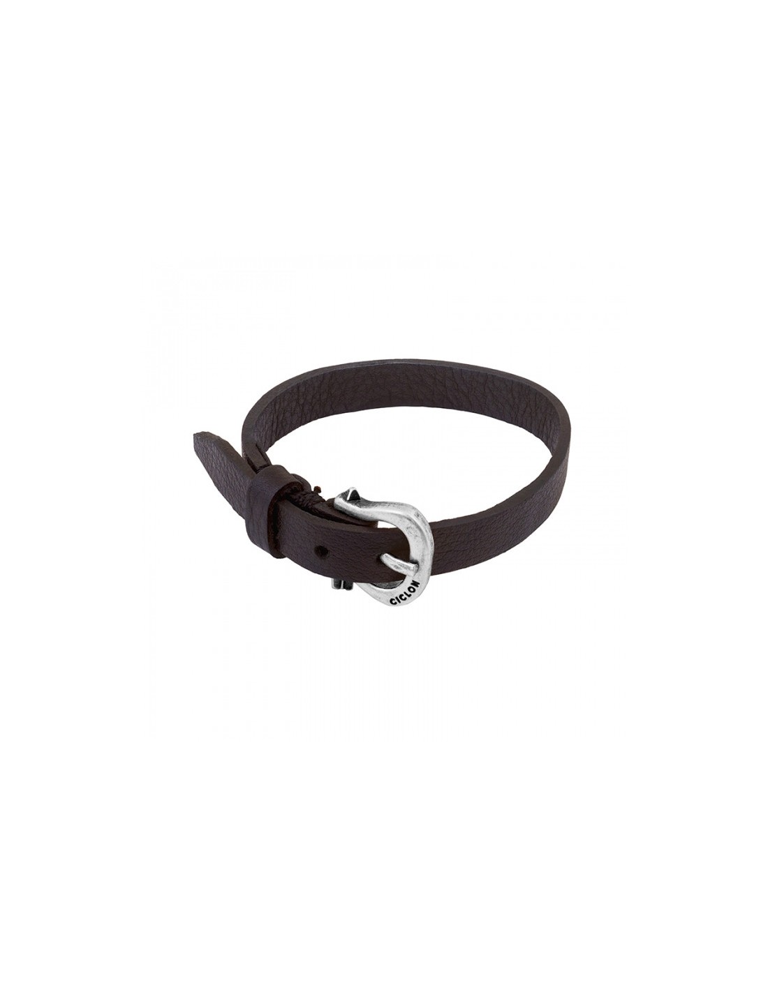 Pulsera en cuero y metal bañado en plata, original cierre de hebilla en metal bañado en plata en un sencillo diseño, pero con toda la personalidad de Ciclón, hecho de manera artesanal 100%