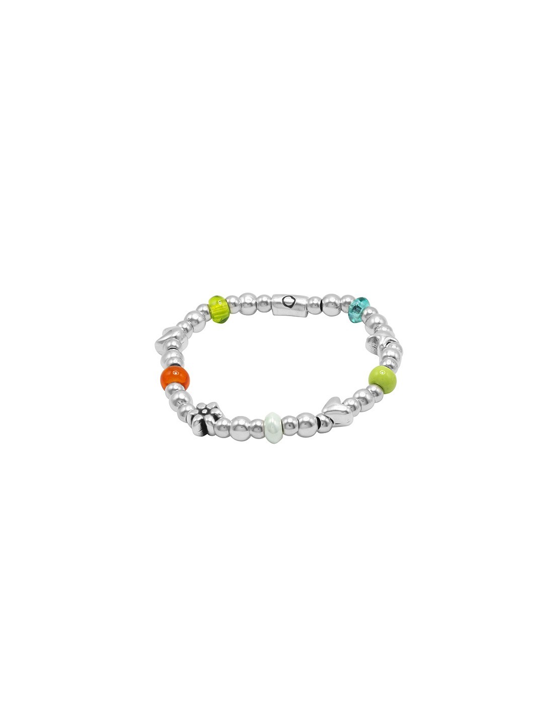La Pulsera Funny de Ciclón, elástica y adornada con bolitas bañadas en plata, cristales de Murano de colores y piezas pasantes con motivos variados