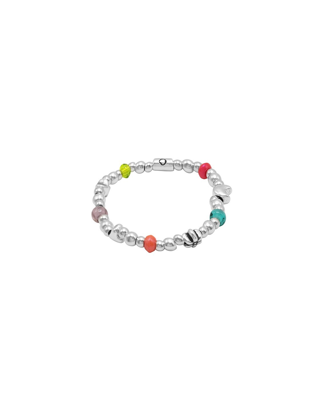 La Pulsera Funny de Ciclón, elástica y adornada con bolitas bañadas en plata, cristales de Murano de colores y piezas pasantes con motivos variados