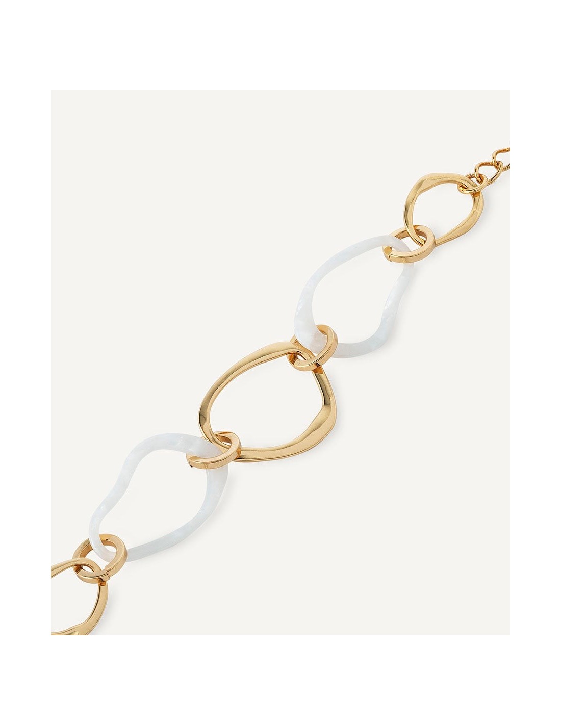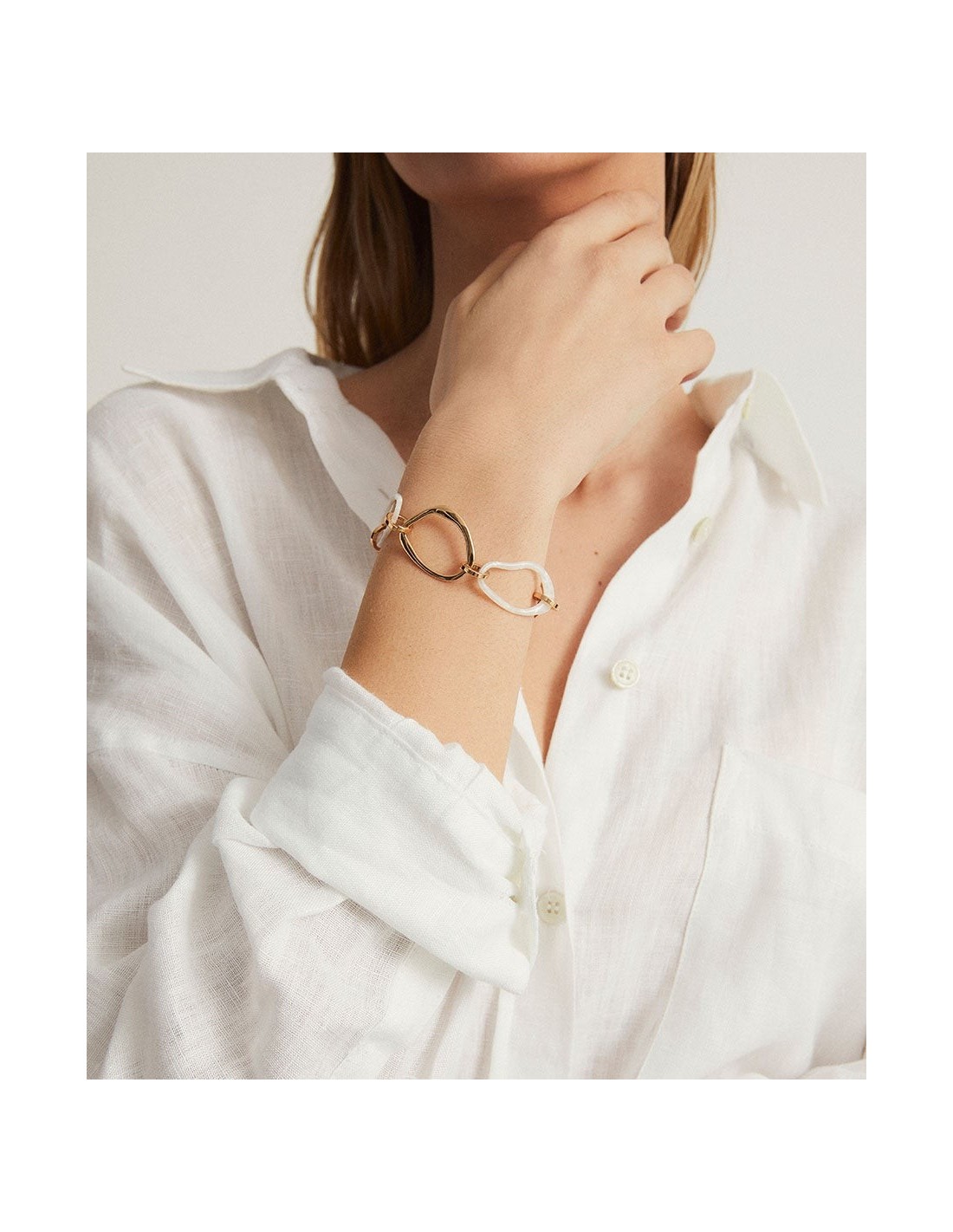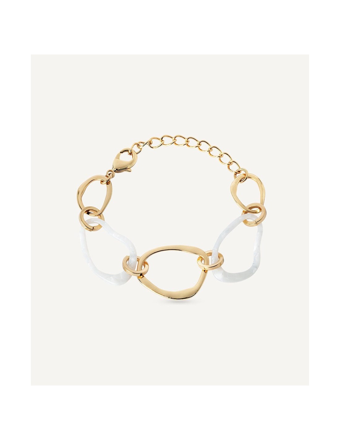 Pulsera Reflexe colección Eva chapado Oro 18Kt eslabones grandes de acetato blanco.
