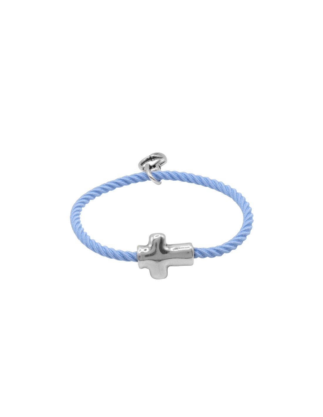 Con un cordón elástico se adapta cómodamente a la muñeca y está acompañada de un delicado motivo de cruz bañada en plata.