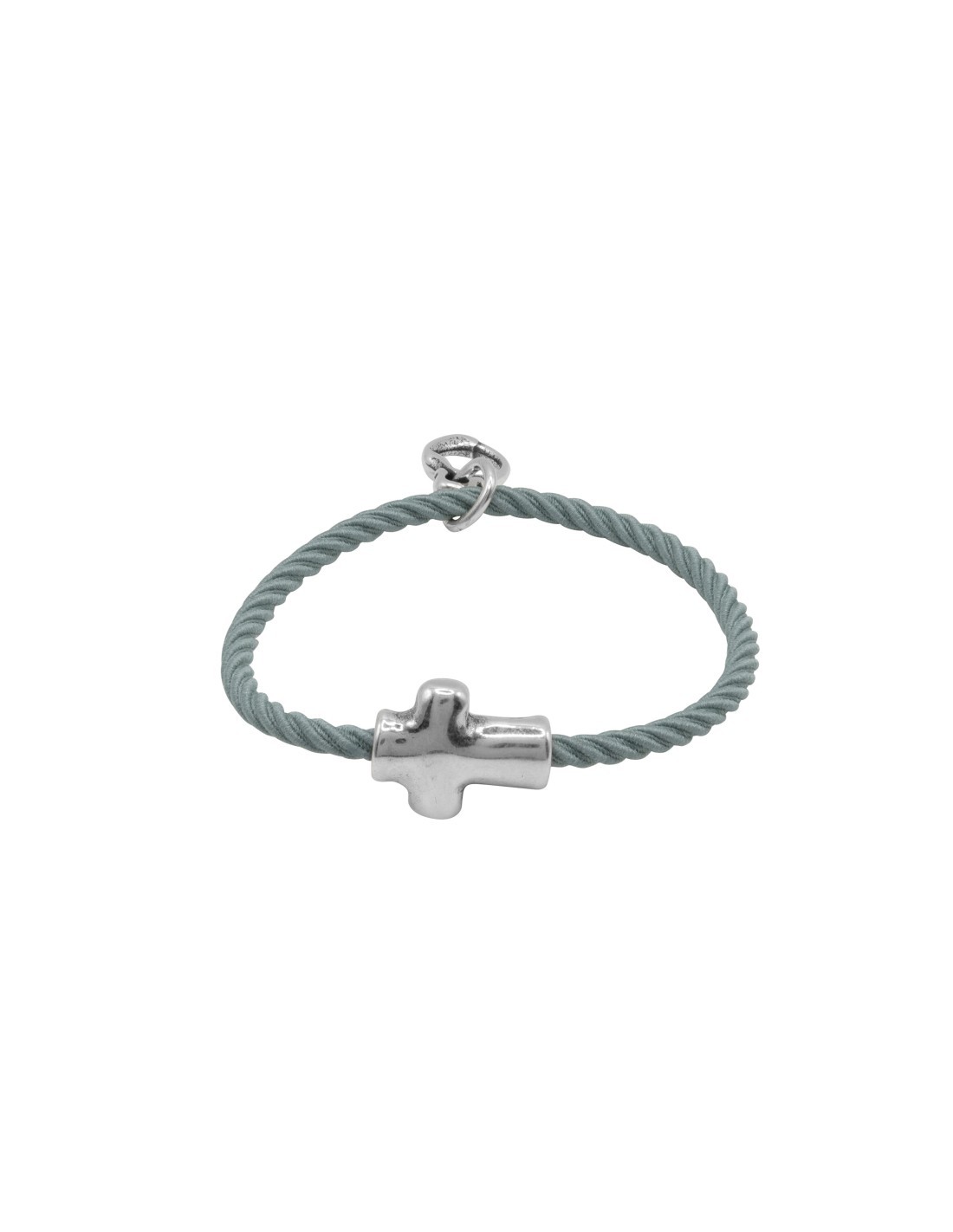 Con un cordón elástico se adapta cómodamente a la muñeca y está acompañada de un delicado motivo de cruz bañada en plata.