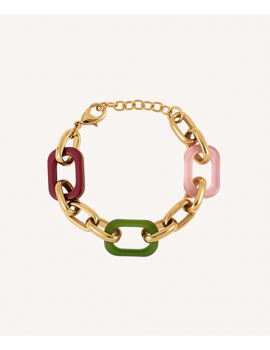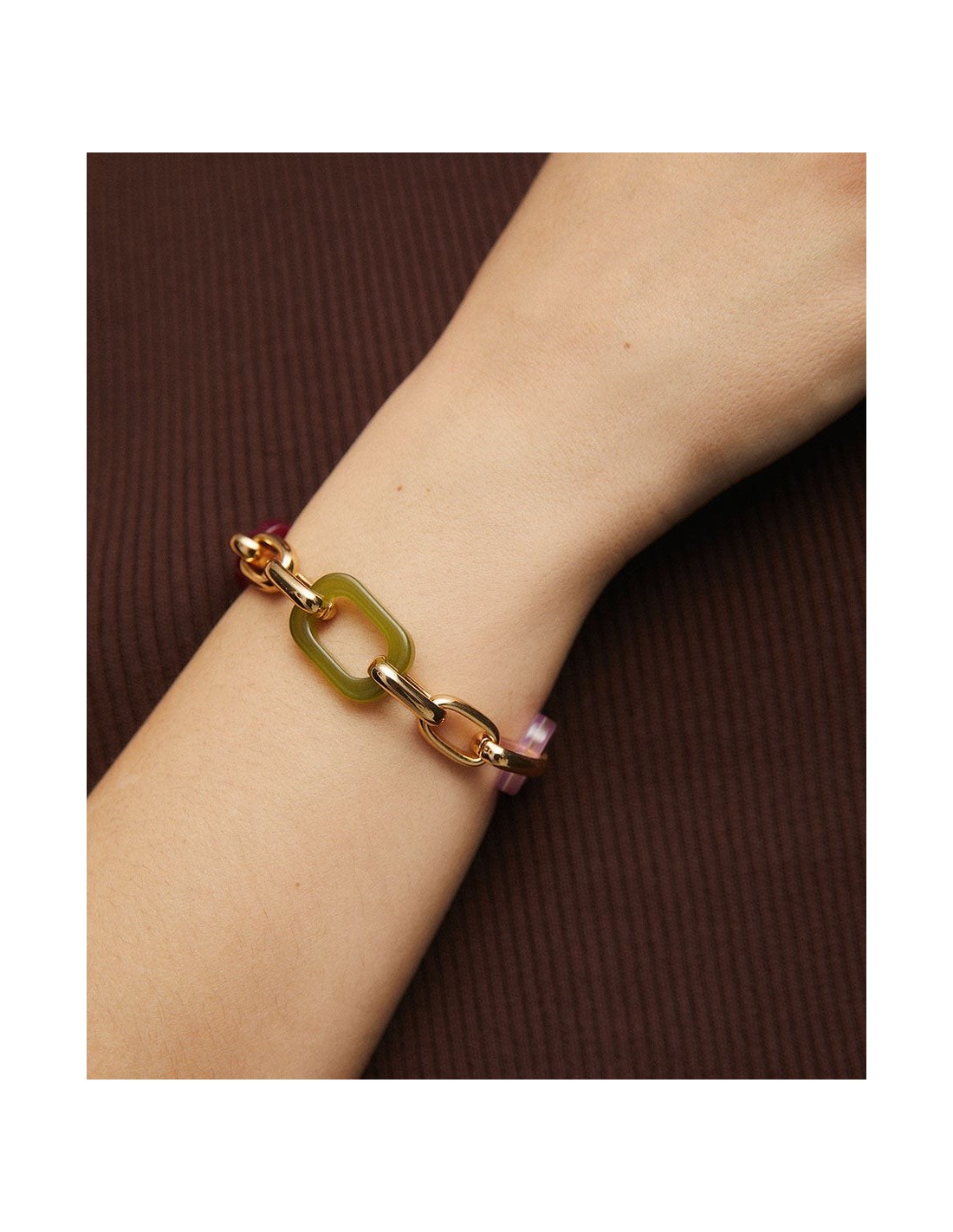 Pulsera Colección Eva chapado en Oro 18kt con eslabones de acetato multicolor. Un clásico reinventado gracias a su moderno diseño.